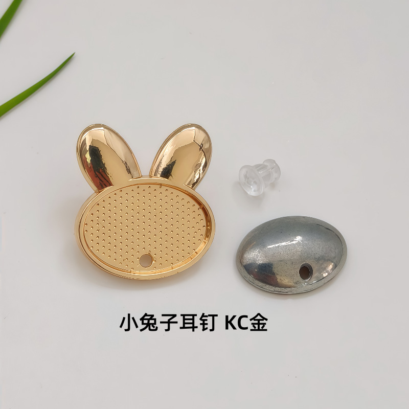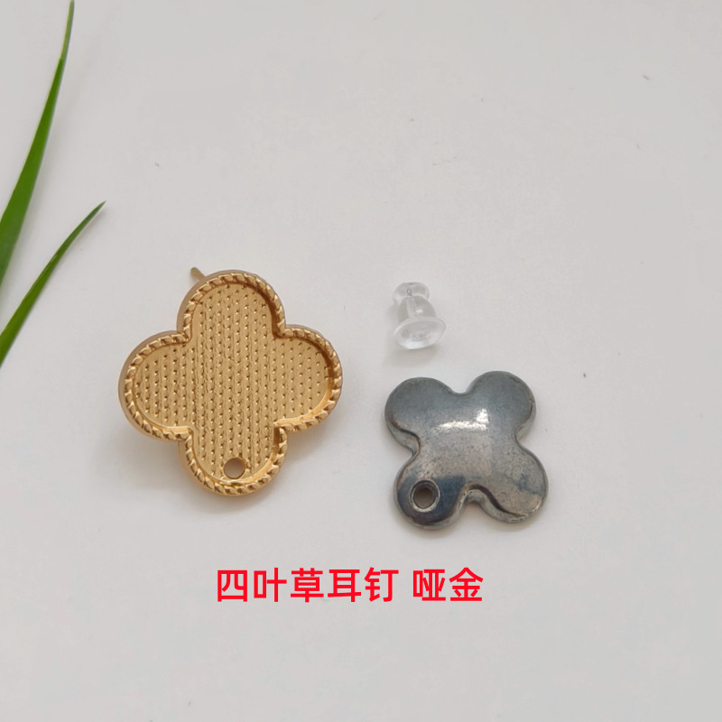 宋锦DIY四叶草蝴蝶珍珠耳环底托带盖新中式贴布艺耳饰材料配件