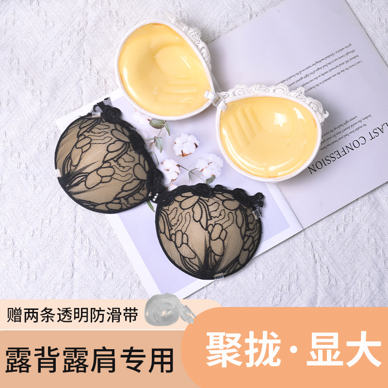 新款深U隐形文胸收侧乳无肩带聚拢硅胶胸贴一片式深U内衣透气抹胸