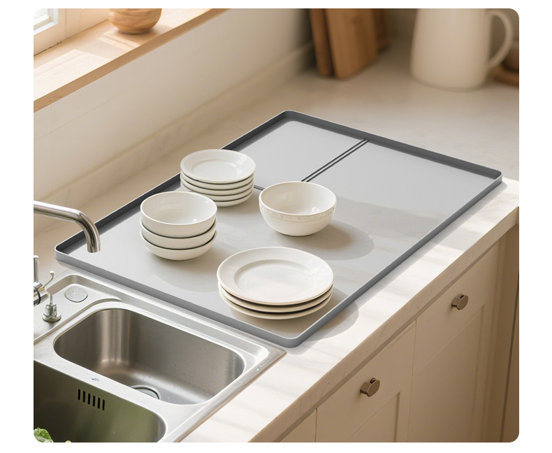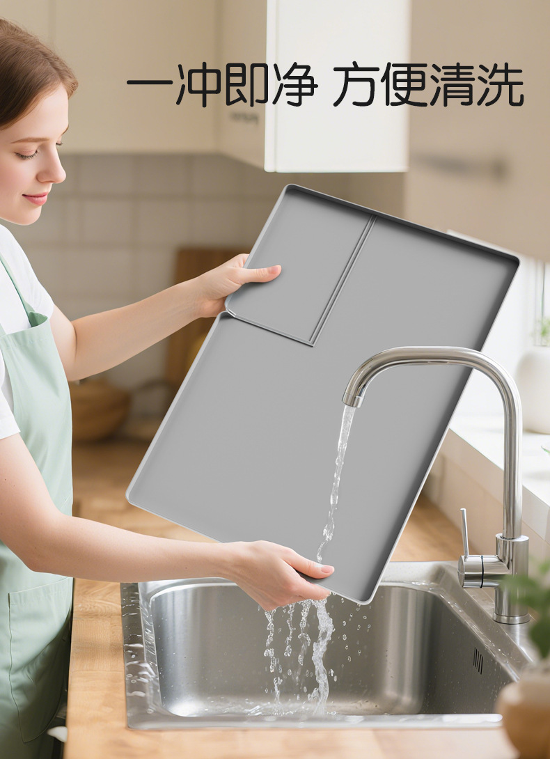 跨境硅胶沥水垫可折叠餐具架碗碟干燥垫厨房柜台防滑隔热排水垫子