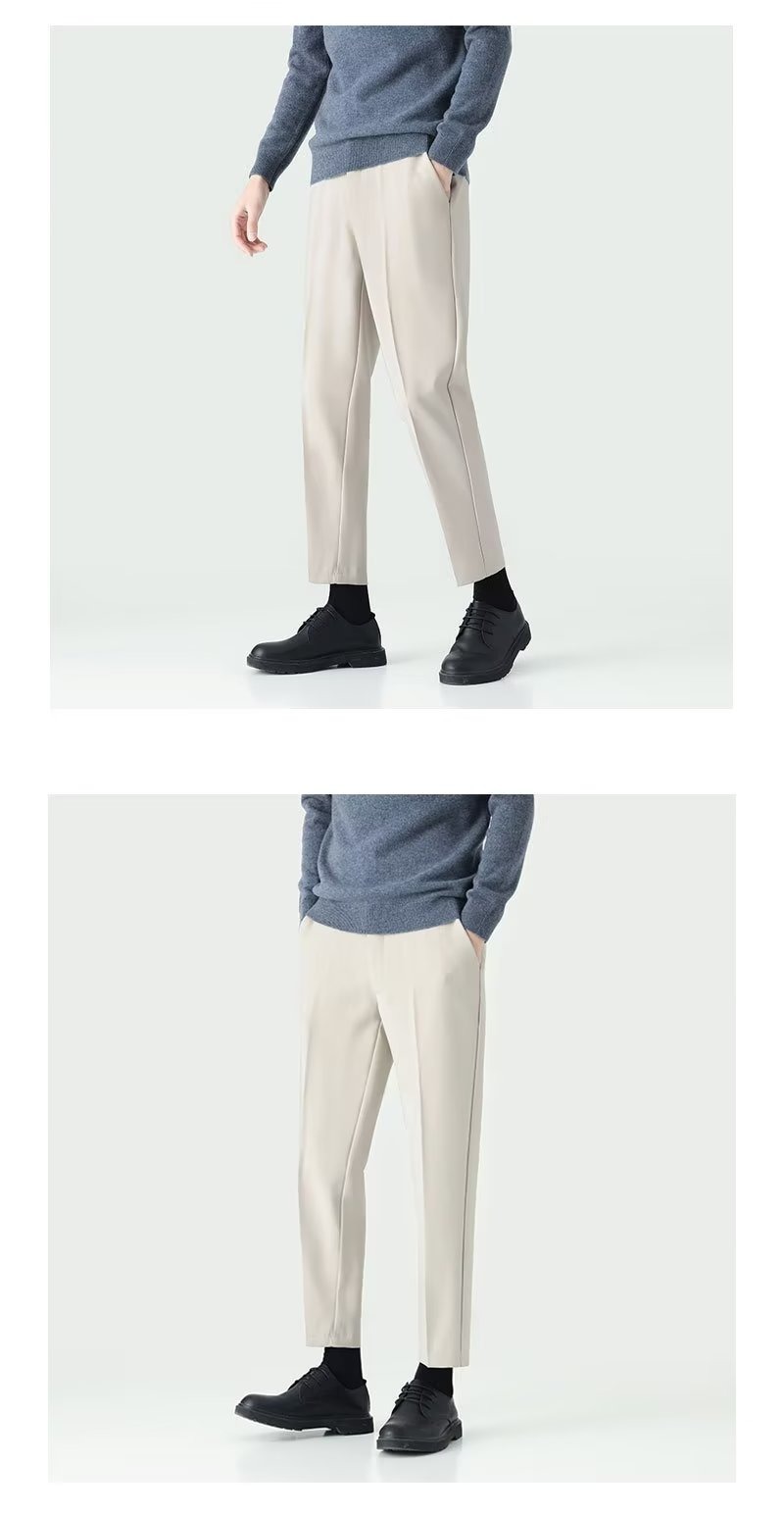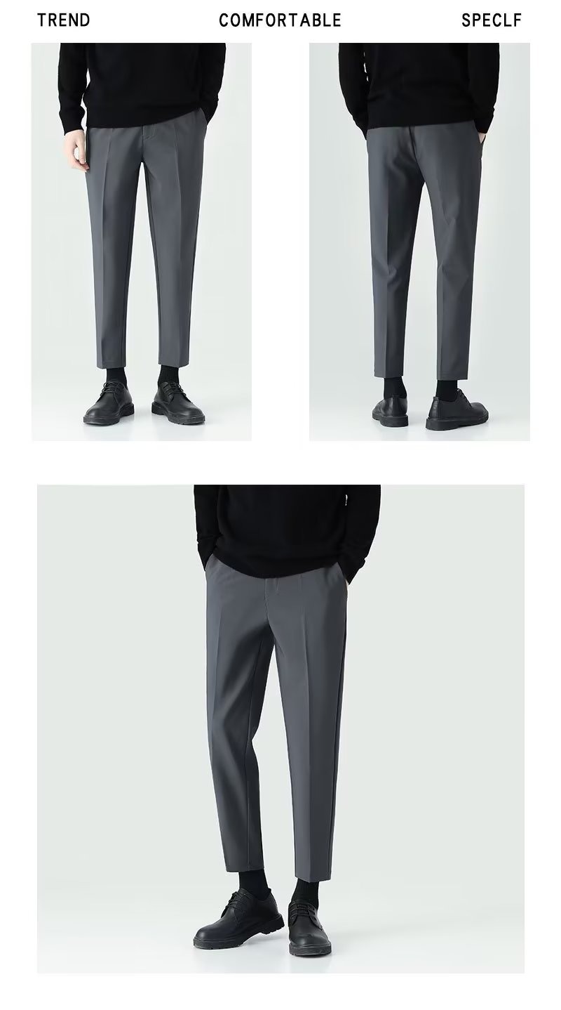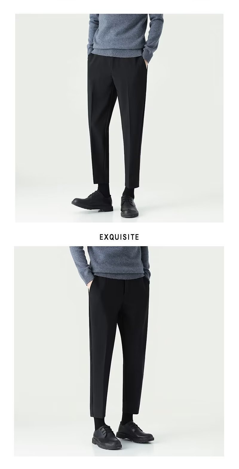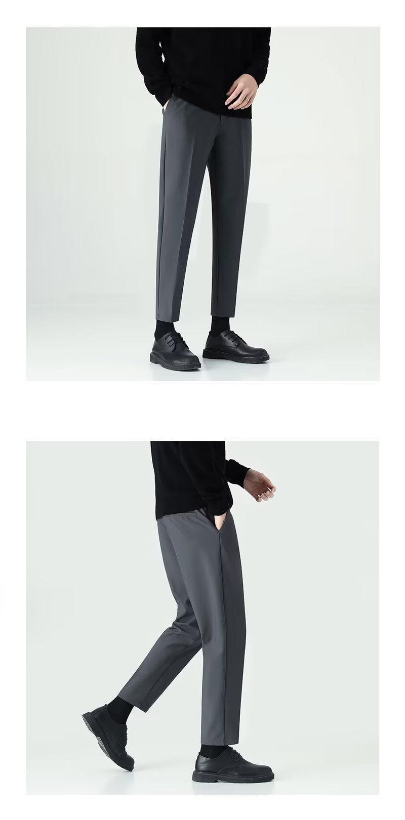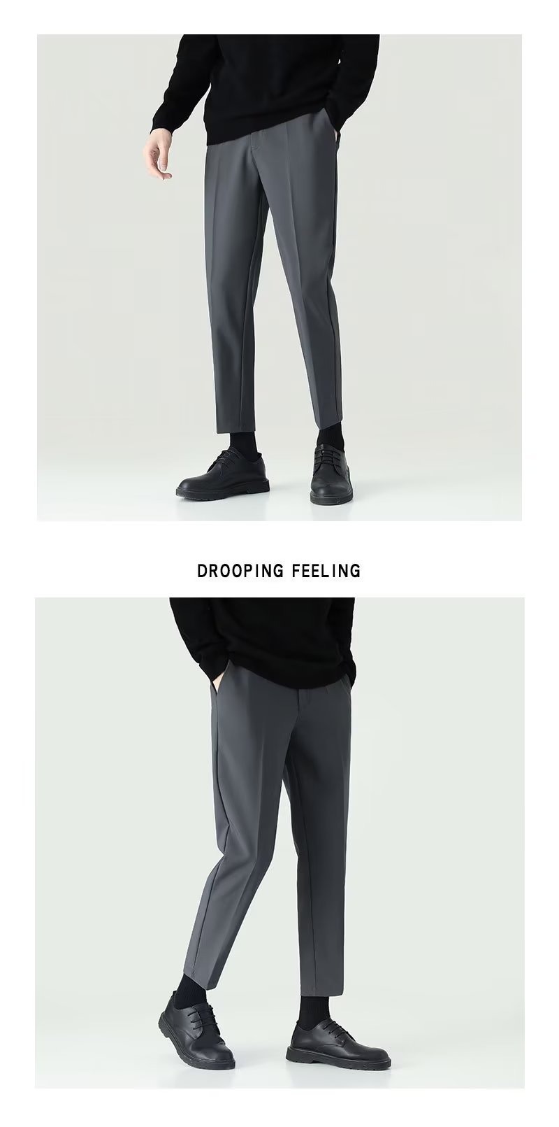メンズビジネスカジュアルパンツ、9点パンツ、春秋ドレープストレートスリムフィットスーツロングパンツ