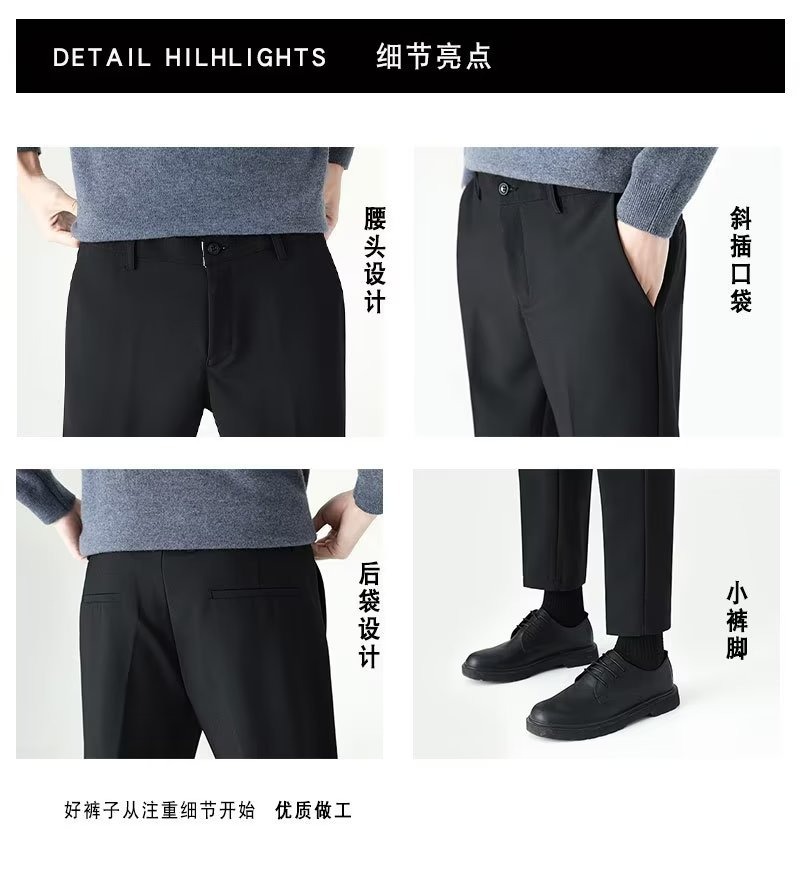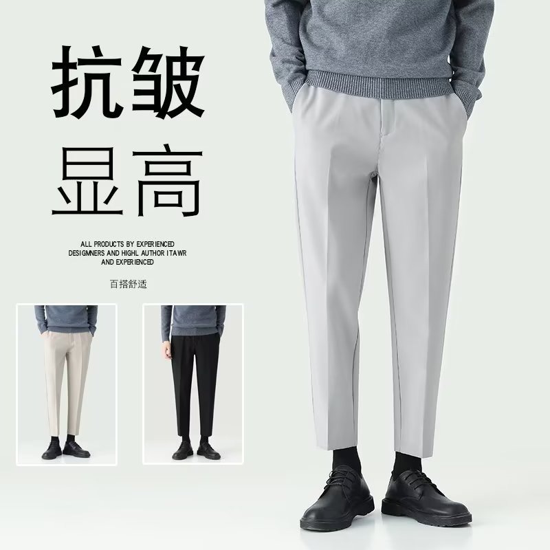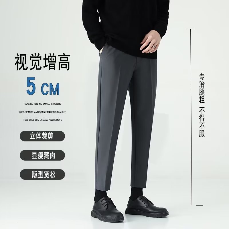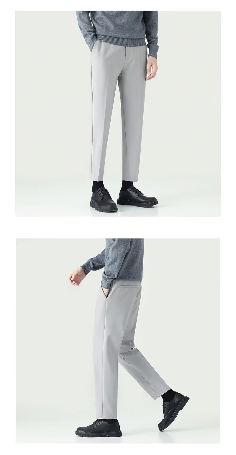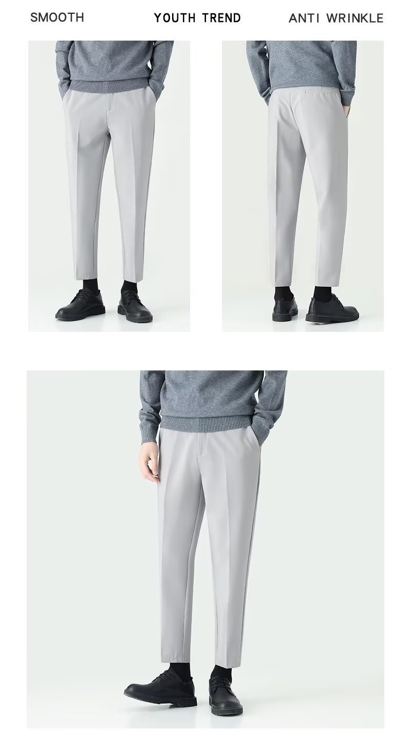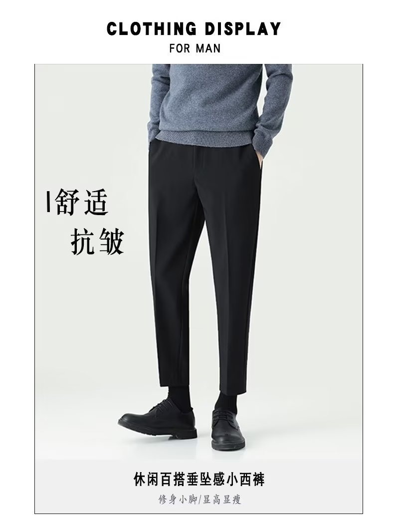 メンズビジネスカジュアルパンツ、9点パンツ、春秋ドレープストレートスリムフィットスーツロングパンツ
