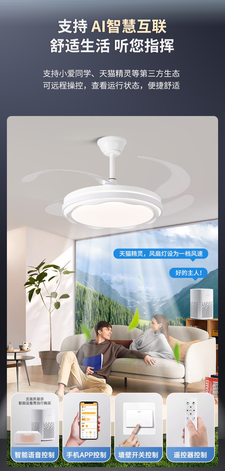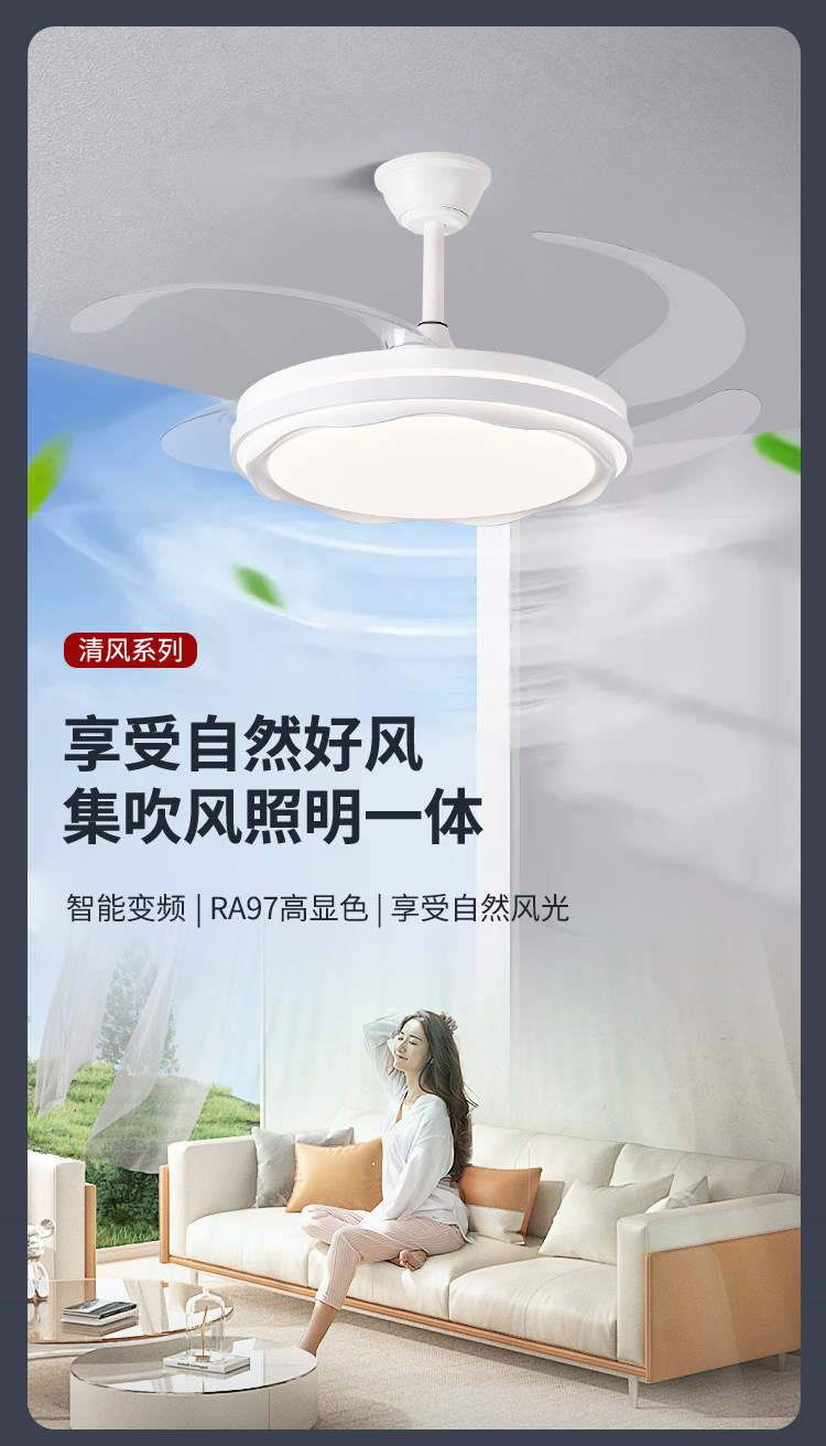智能变频风扇灯餐厅吊扇灯客厅隐形风扇灯全光谱护眼卧室吸顶灯