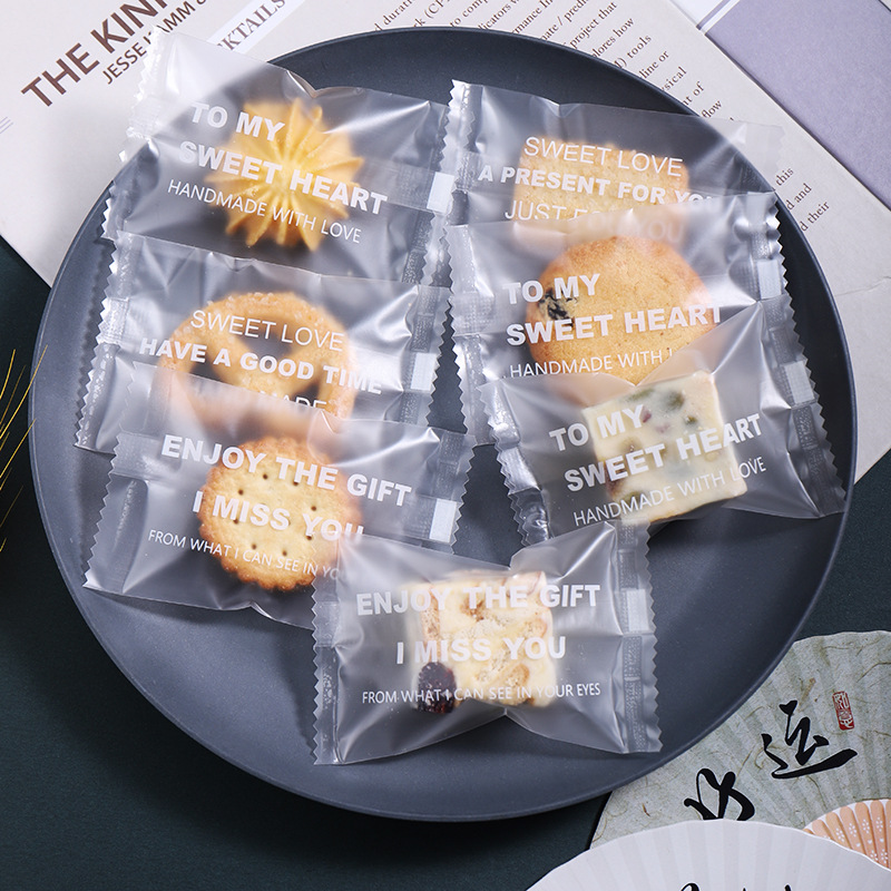 磨砂饼干包装袋烘焙英文款雪花酥袋子曲奇纽扣饼干糖果奶枣机封袋