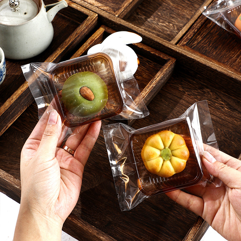 2025年月餅包装袋機械密封袋、厚手の高級焼き卵黄パイ生地、透明ボックス、雪皮月餅個別包装