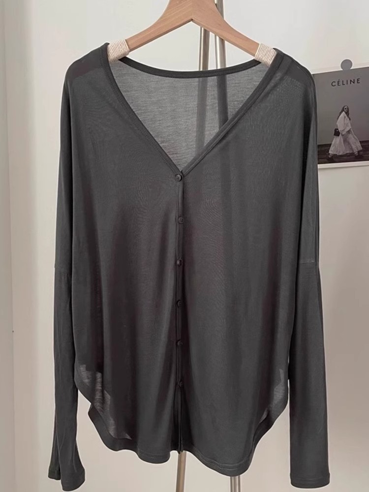 春夏薄手不規則Vネックボタンカーディガン長袖日焼け止め空調シャツ大きいサイズレディースジャケット
