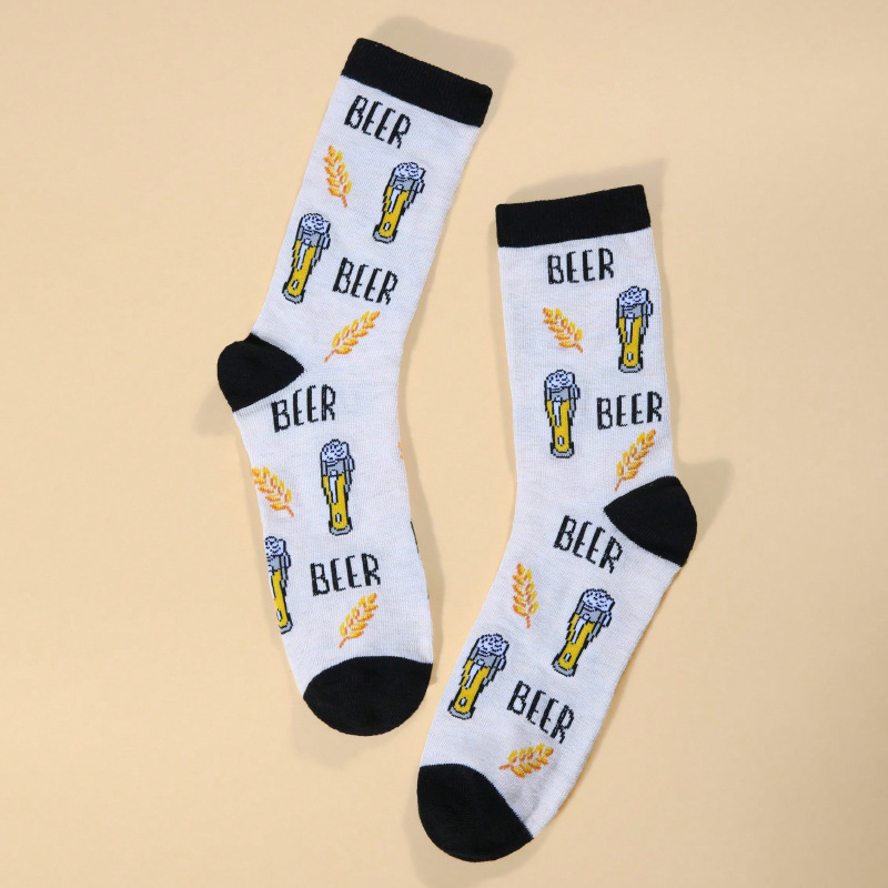 クロスボーダーヨーロッパとアメリカのミッドカーフソックスクリエイティブビールパターンアメリカンストリートトレンドスタイルパーソナライズされたカップルソックスメンズソックス