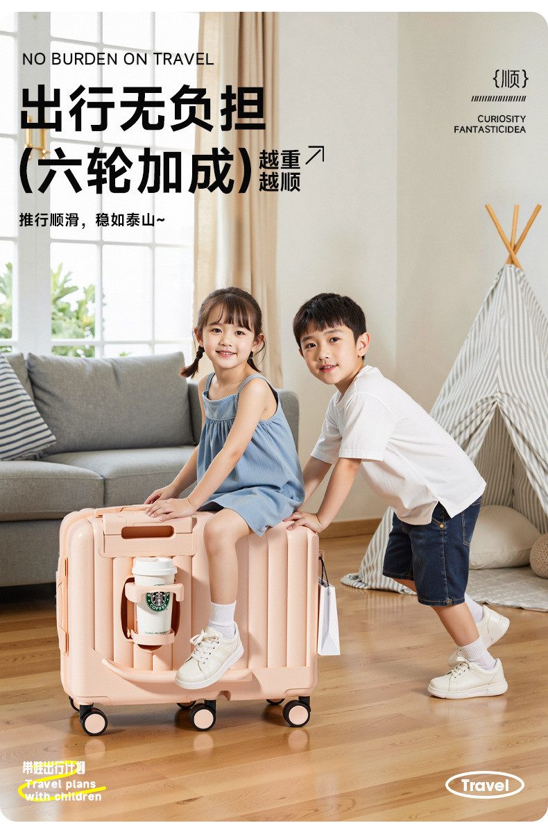 新款儿童行李箱拉杆箱20寸大容量可坐可骑登机箱万向轮6轮旅行箱