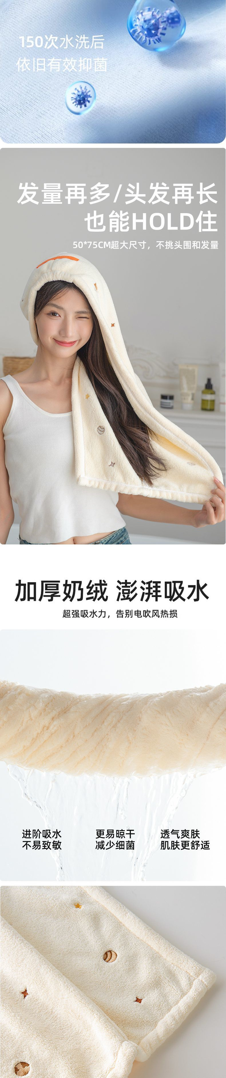 女性用のかわいい刺繍入りヘアドライキャップ、吸水性、速乾性、ヘアドライタオル、厚みのあるコーラルベルベットの漫画ターバン、シャワーキャップ