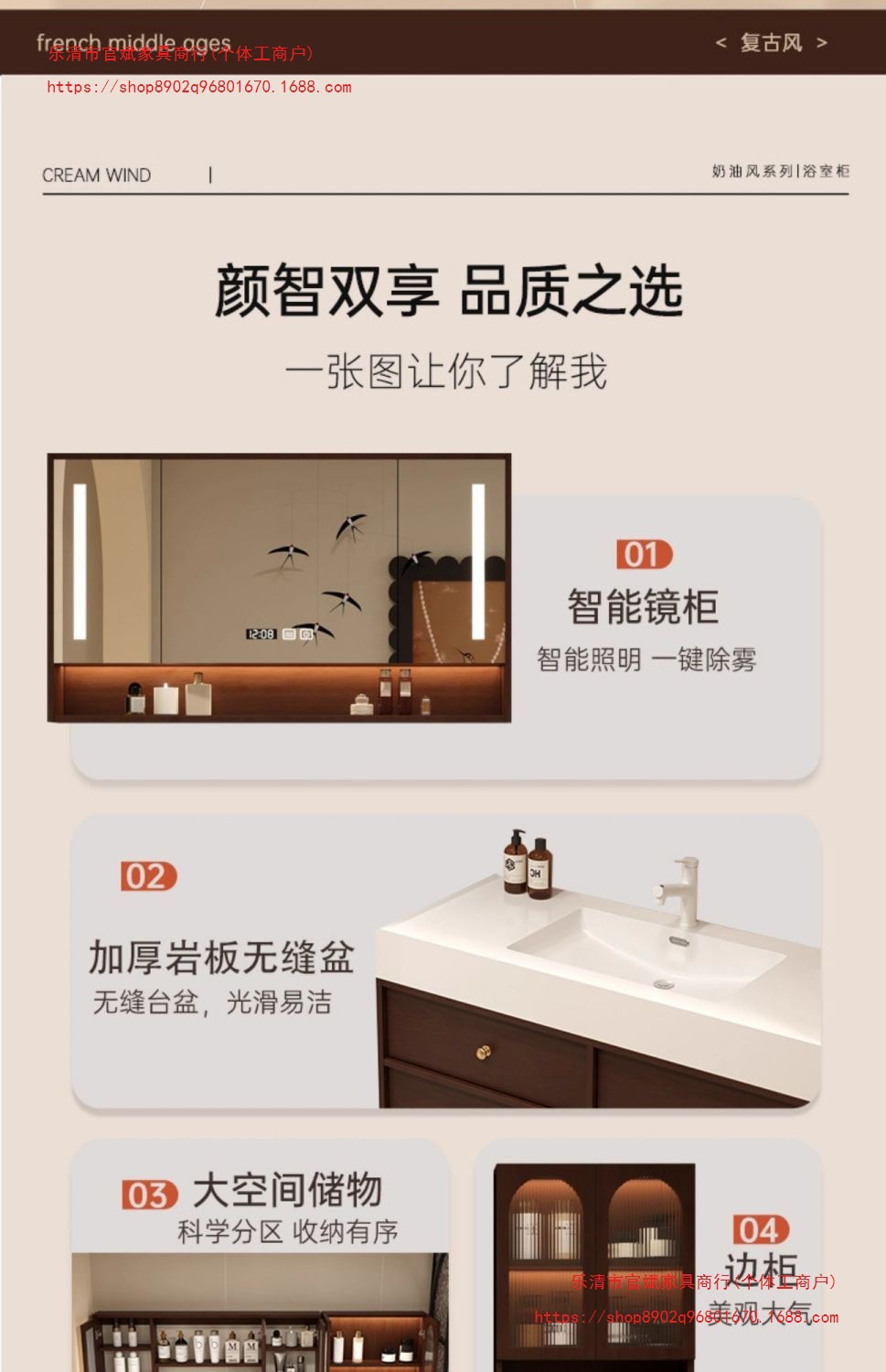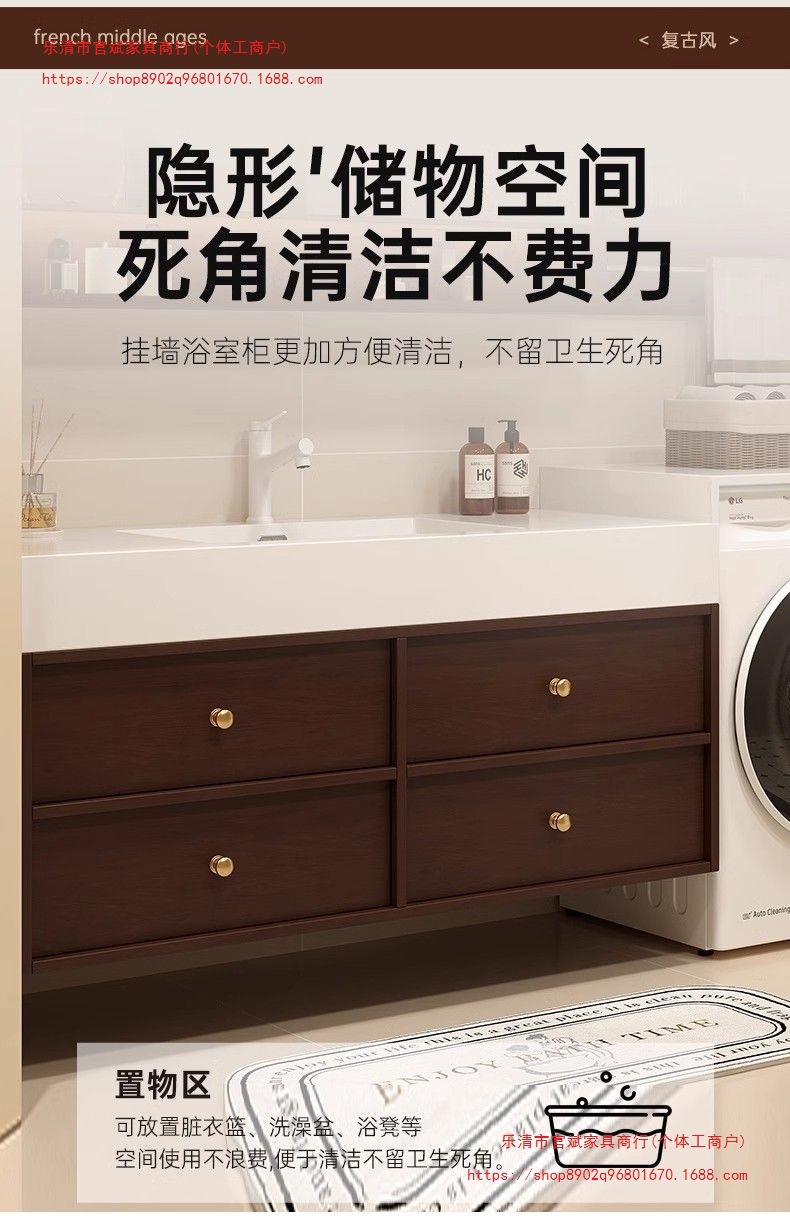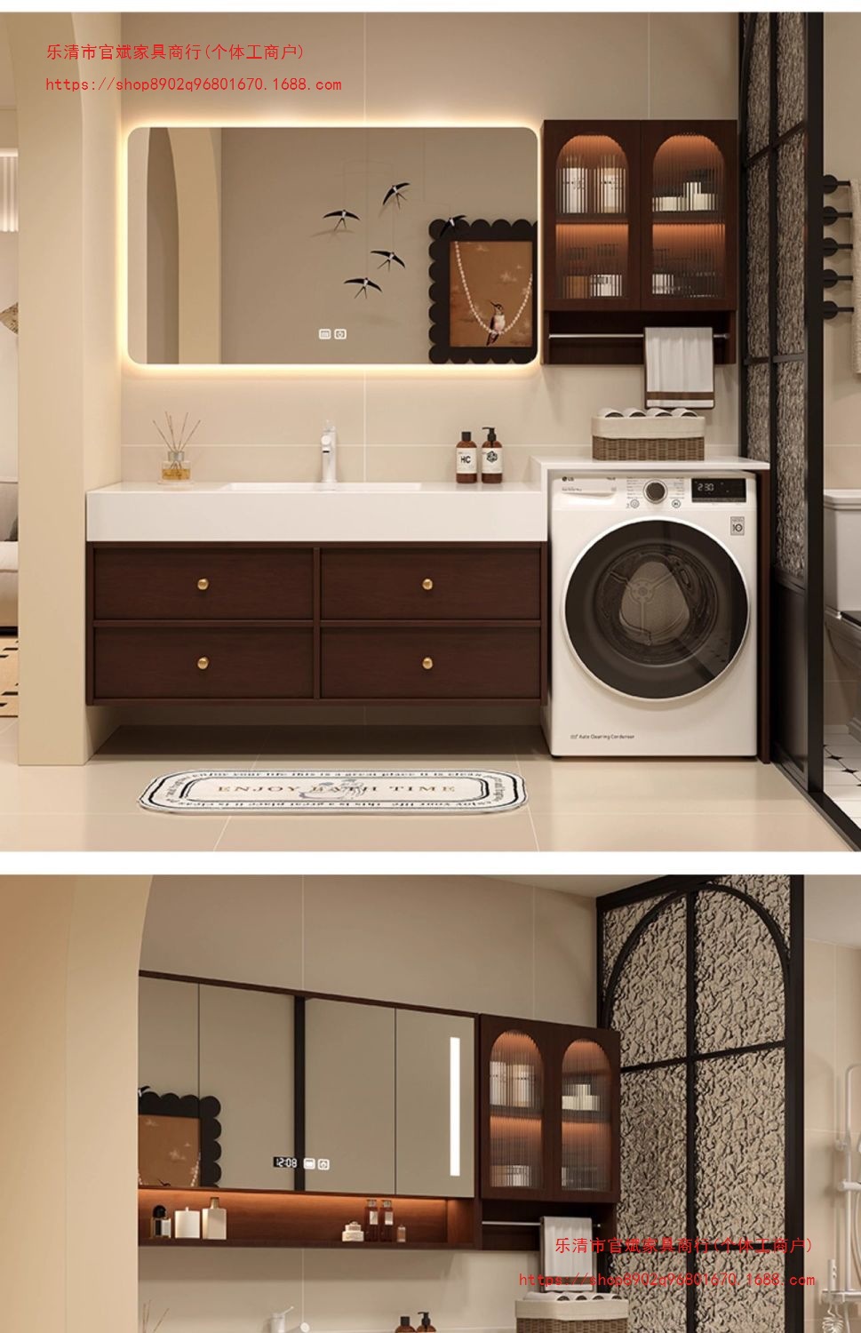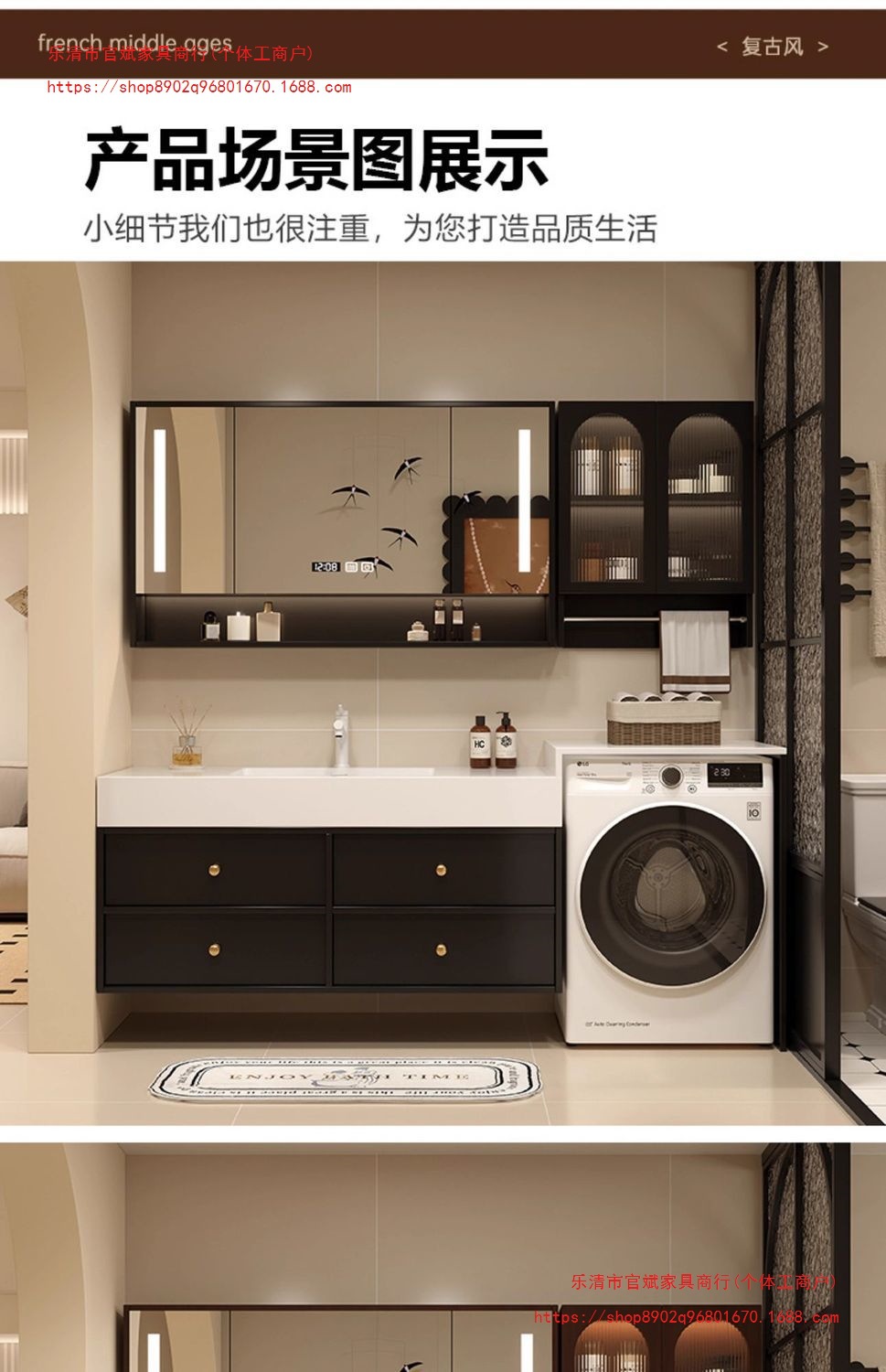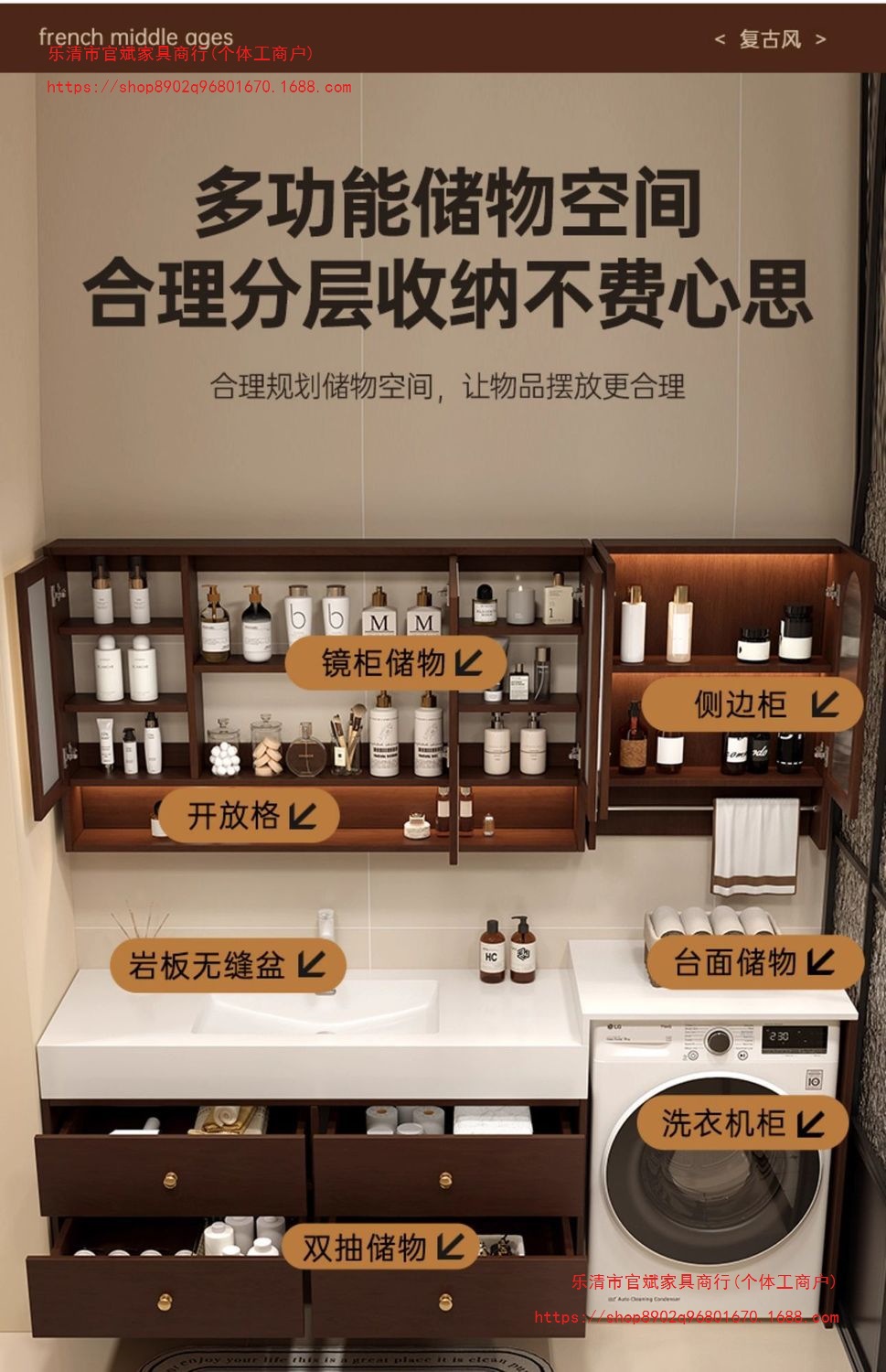 骨中世風バスルームキャビネット洗濯機一体型キャビネット組み合わせバスルームロックボード一体型洗面台洗面台