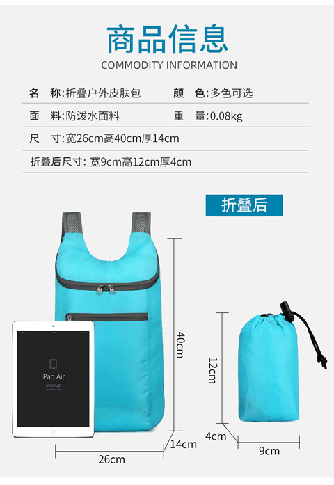 アウトドアサイクリングポータブルスキンバッグショルダーライト折りたたみスポーツバッグトラベルバッグ大容量男性と女性の登山バッグ