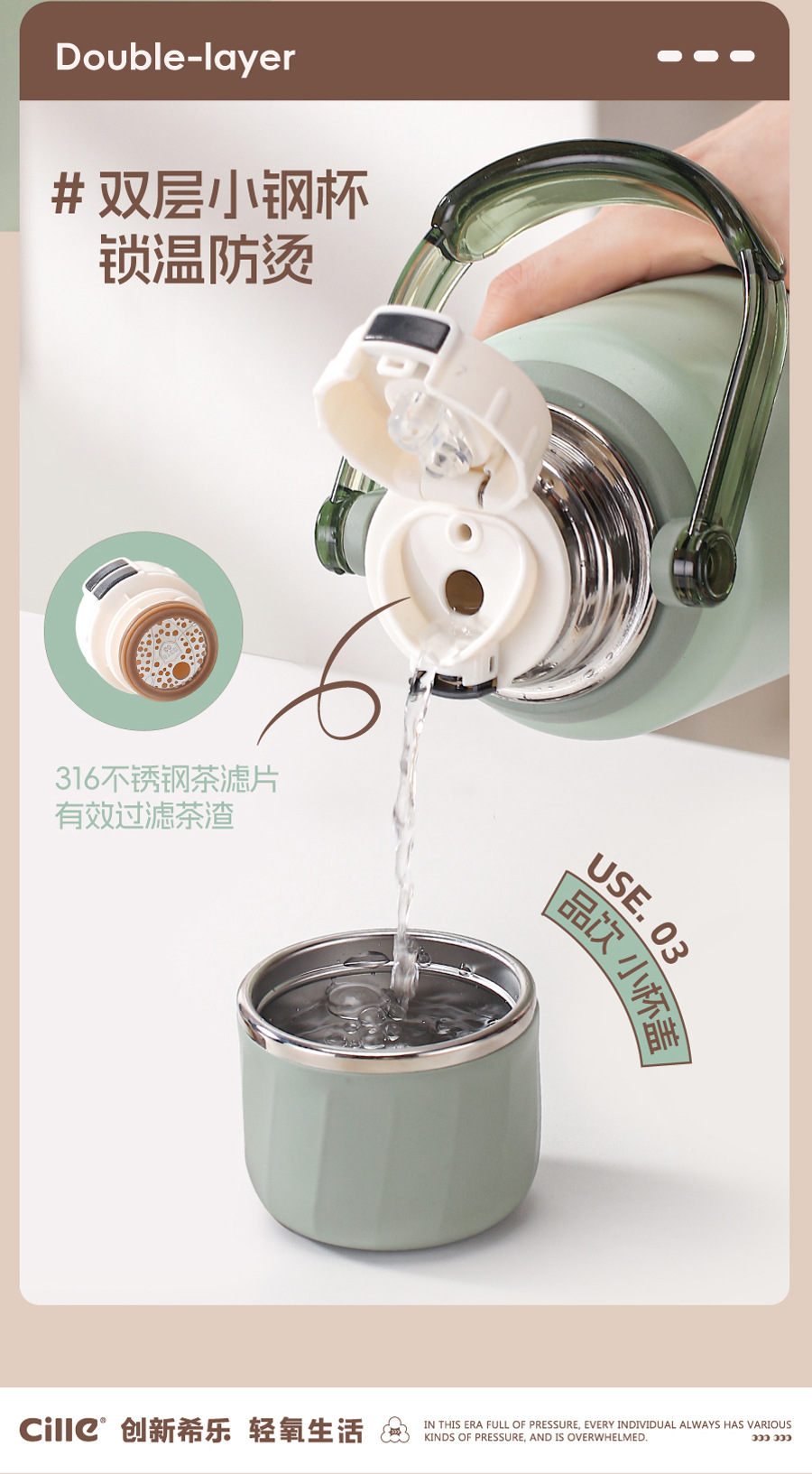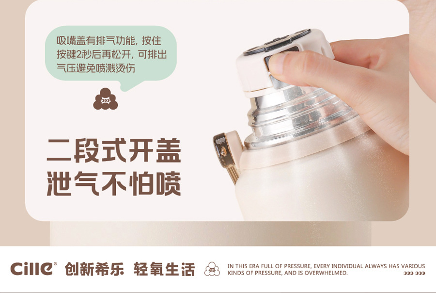 希乐保温杯大号大容量男女儿童婴儿冲奶外出便携水壶不锈钢水杯子