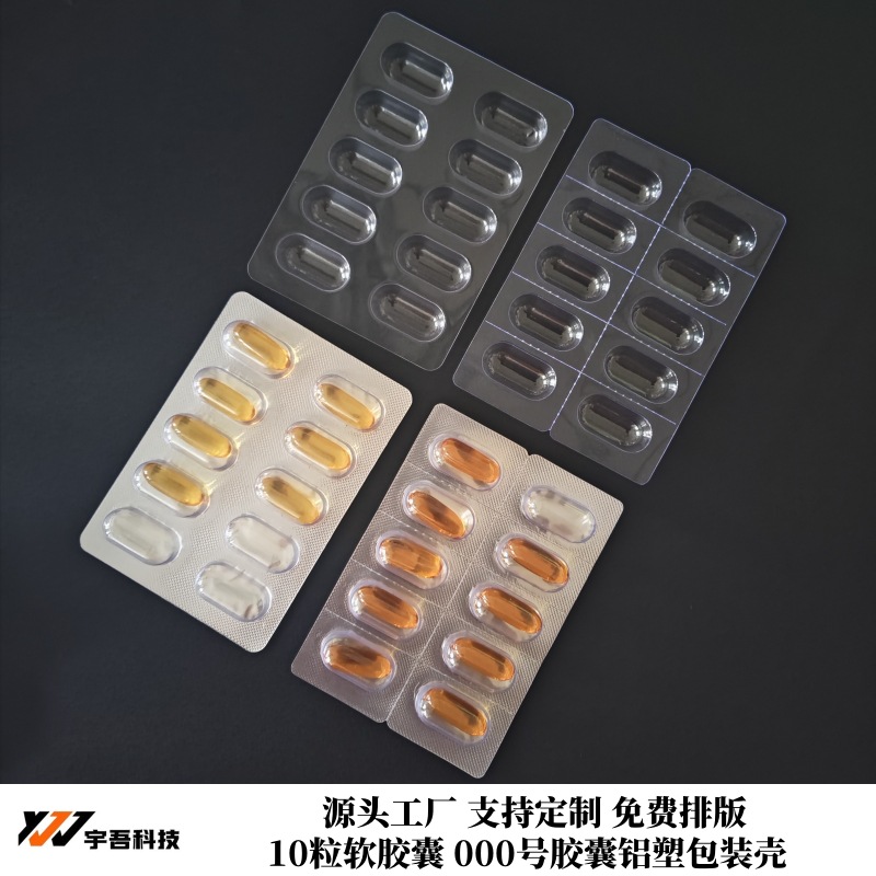 000号胶囊铝塑包装 胶囊吸塑10粒软胶囊泡罩壳 000#10粒PVC泡罩壳