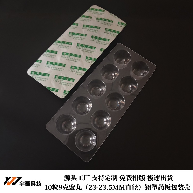 宇吾10粒9克蜜丸药板空壳 中药丸密封吸塑泡罩壳 大药丸药用包装
