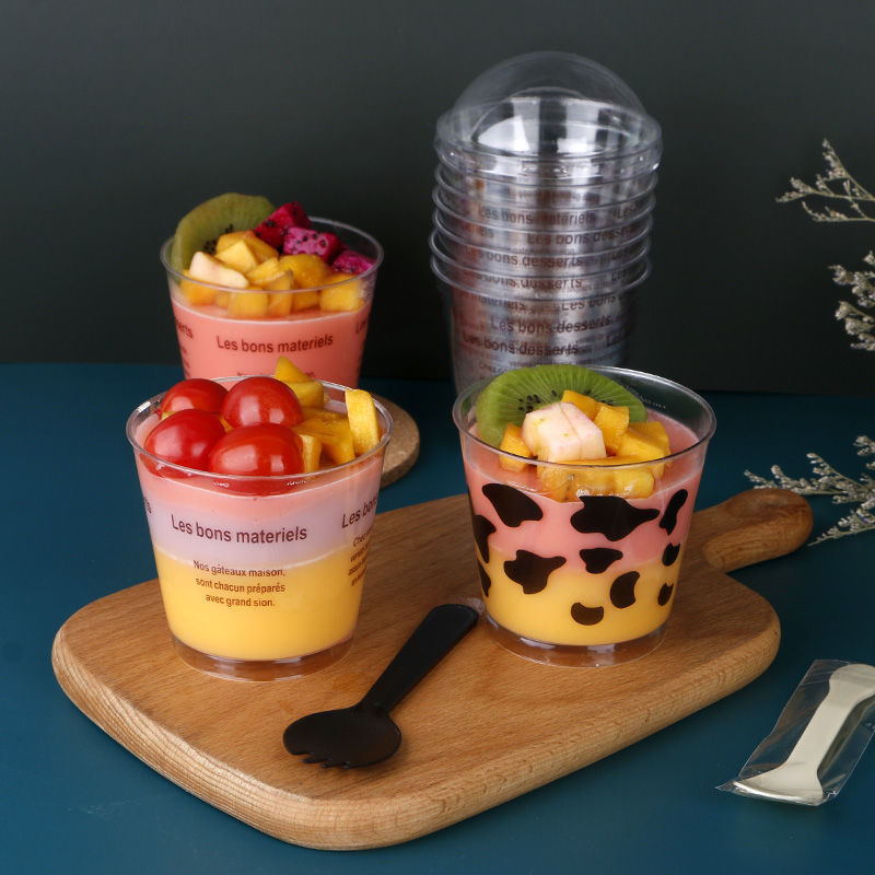 使い捨て木ぬかカップ蓋付きムースカップスプーン付きティラミスカップフルーツケーキプディング透明プラスチックデザート