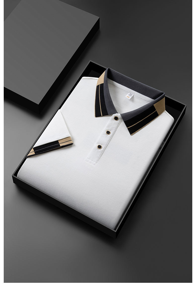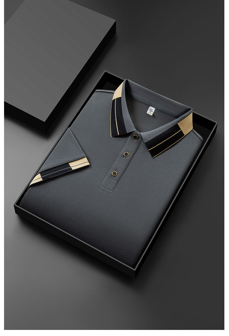 夏季新款男士短袖t恤中青年休闲时尚纯色翻领薄款体恤衫透气凉爽