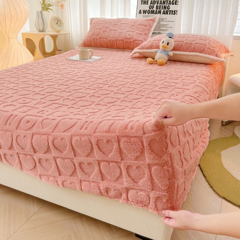 クロスボーダー 2025 新ミルクベルベットタフタ彫刻ベッドシーツ 3 点セット冬無地肌に優しいマットレスプロテクター
