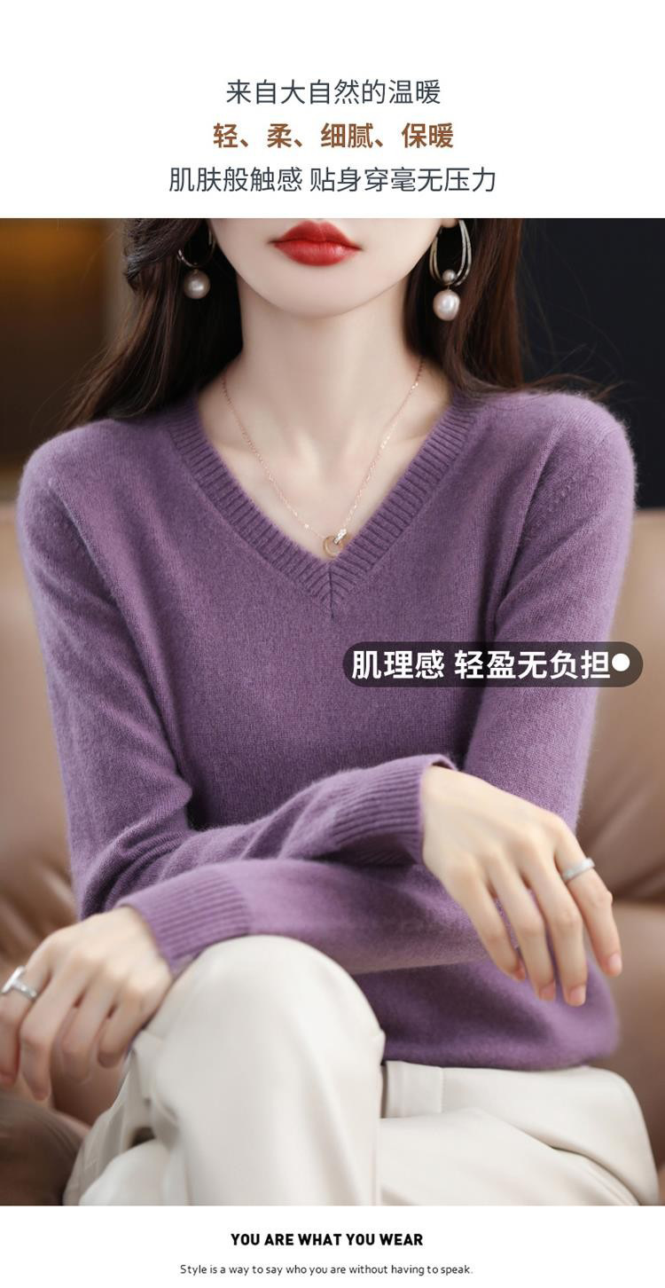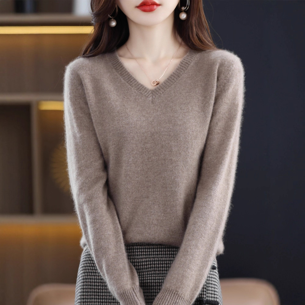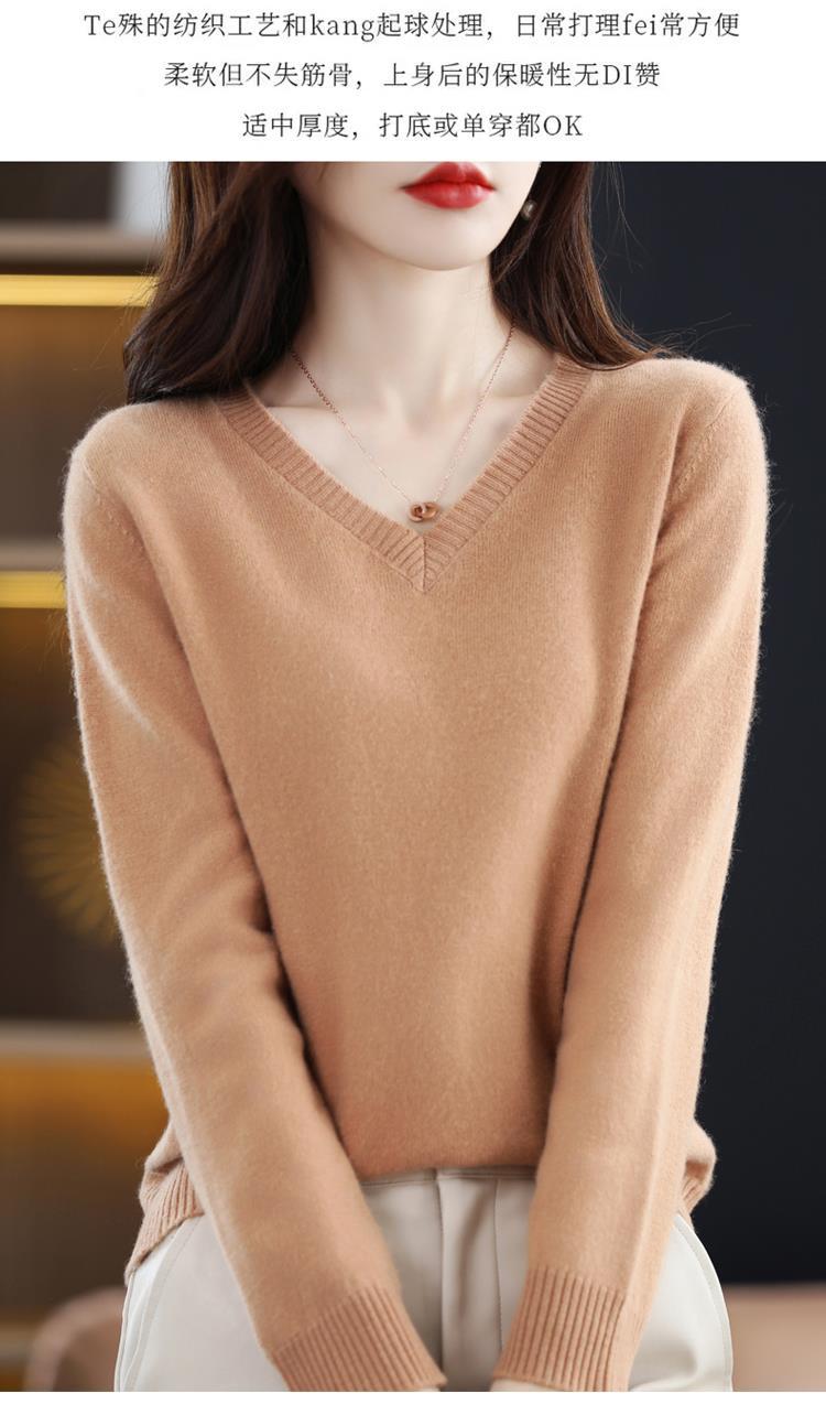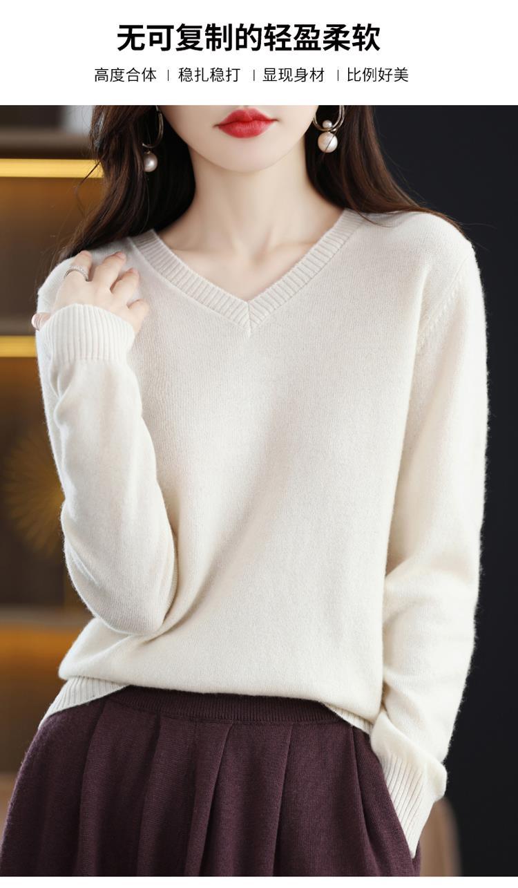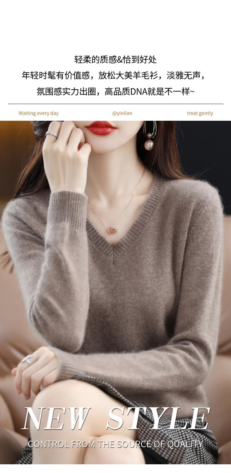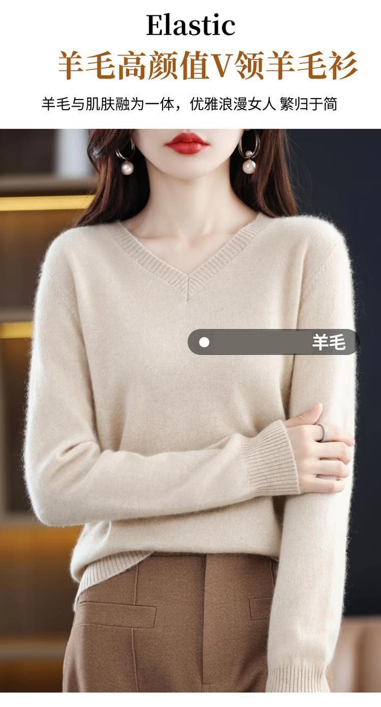 羊毛衫女2025秋季新款V领毛衣宽松显瘦套头长袖羊绒针织打底衫