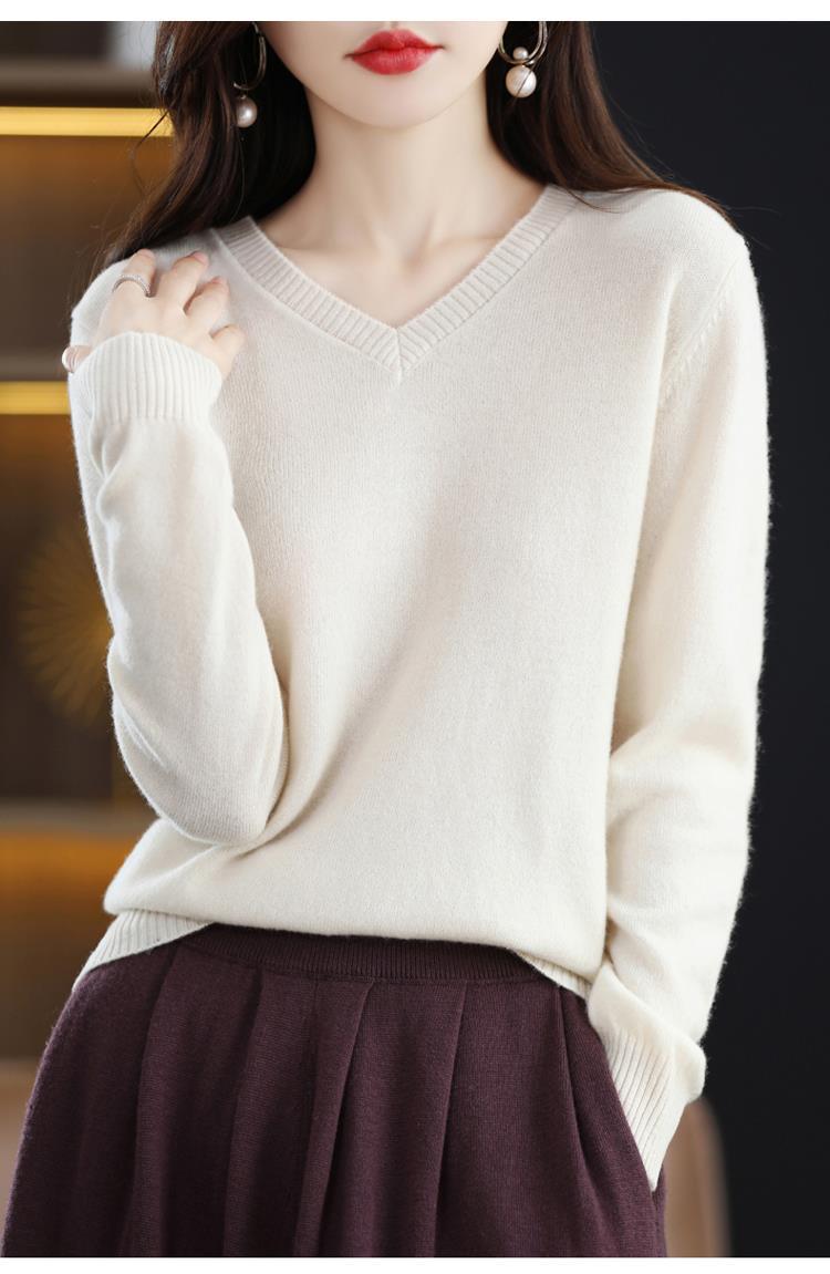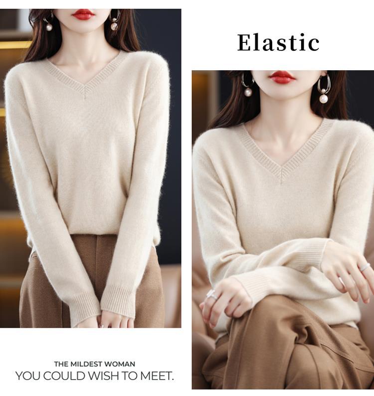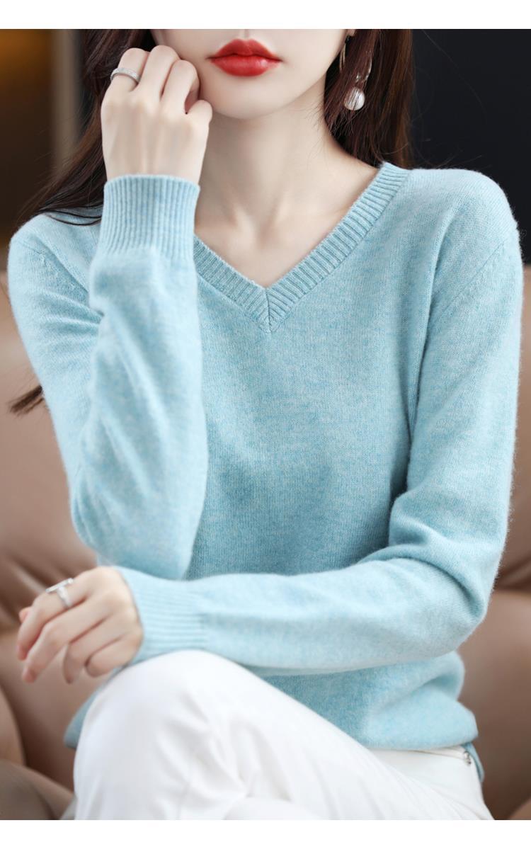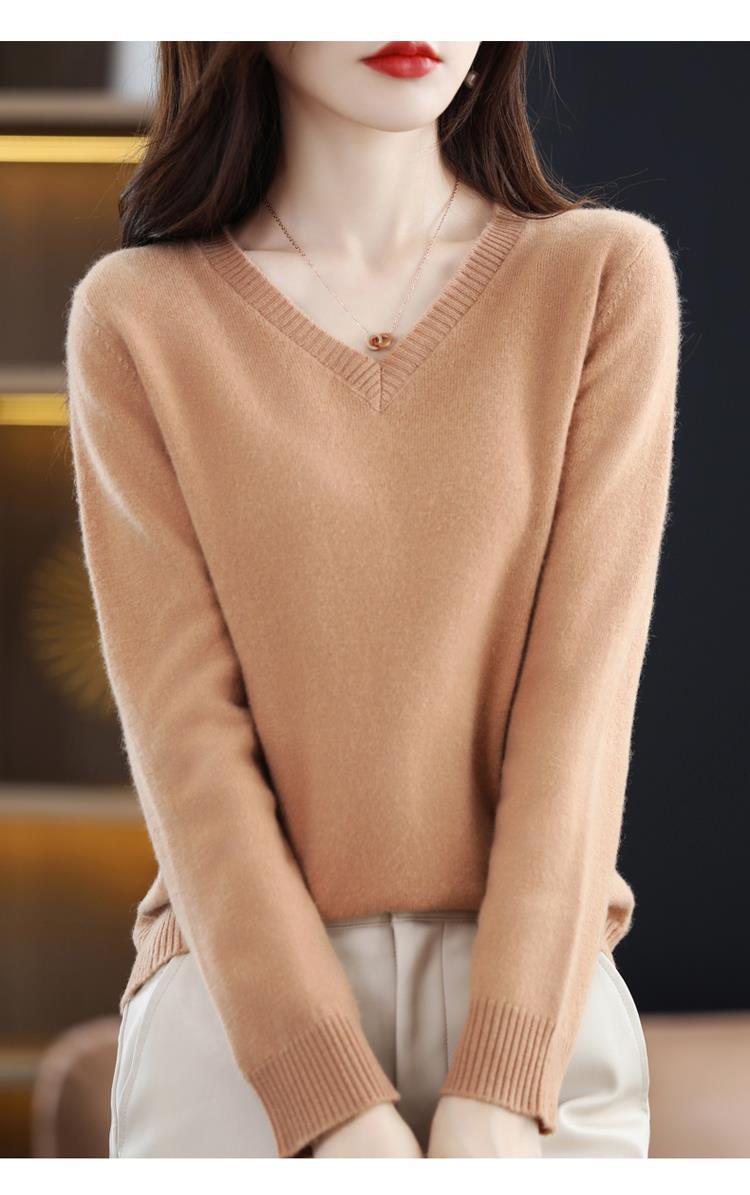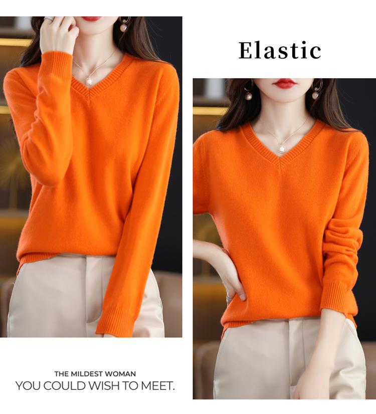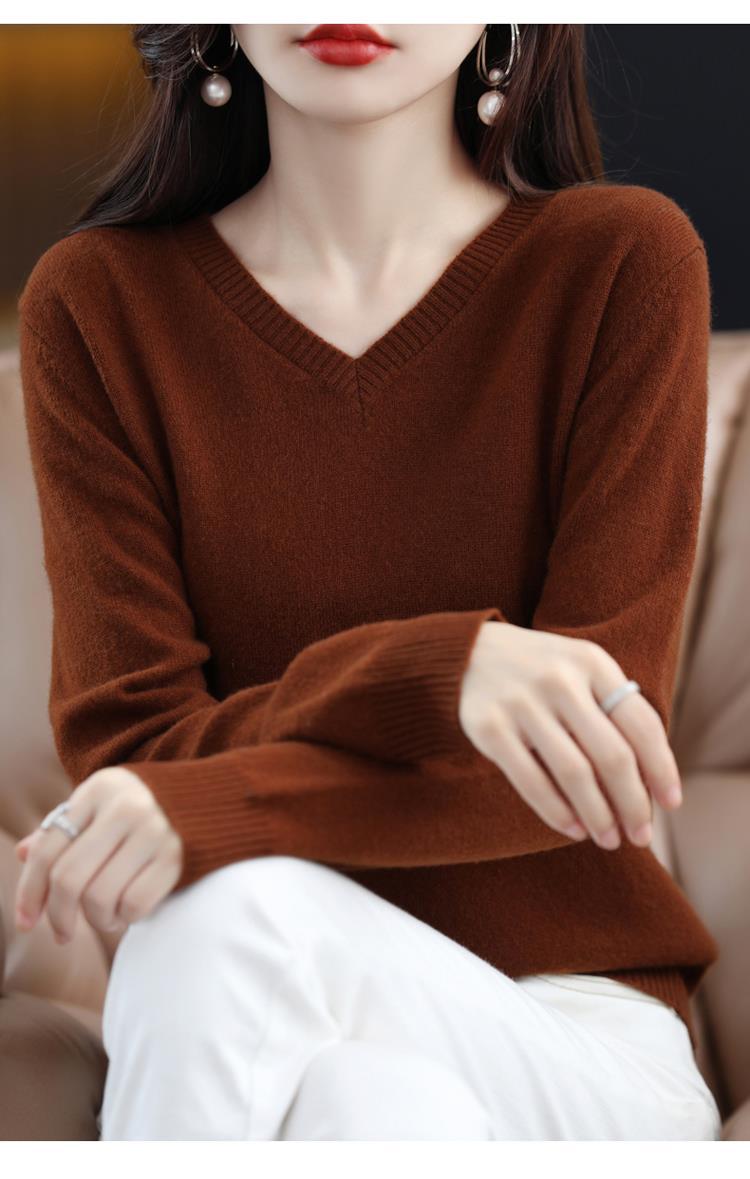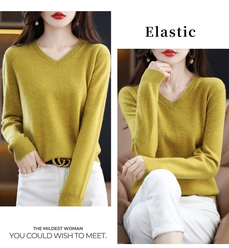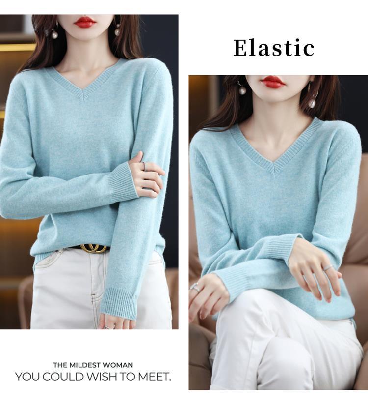 羊毛衫女2025秋季新款V领毛衣宽松显瘦套头长袖羊绒针织打底衫
