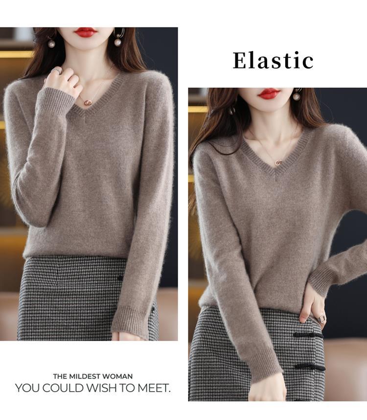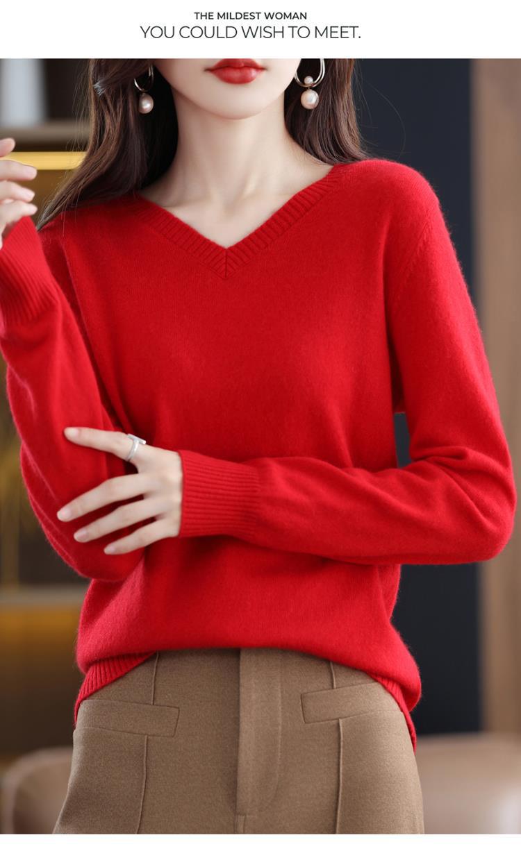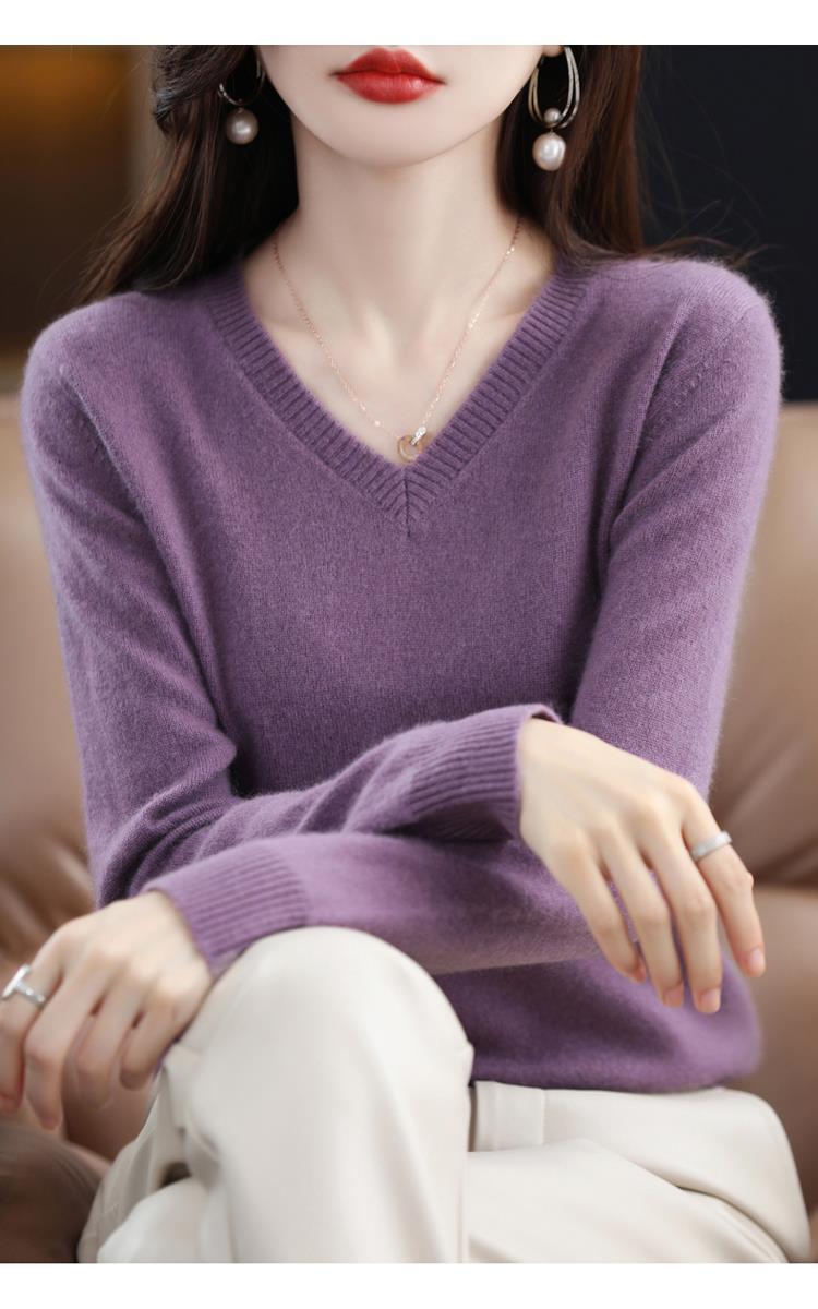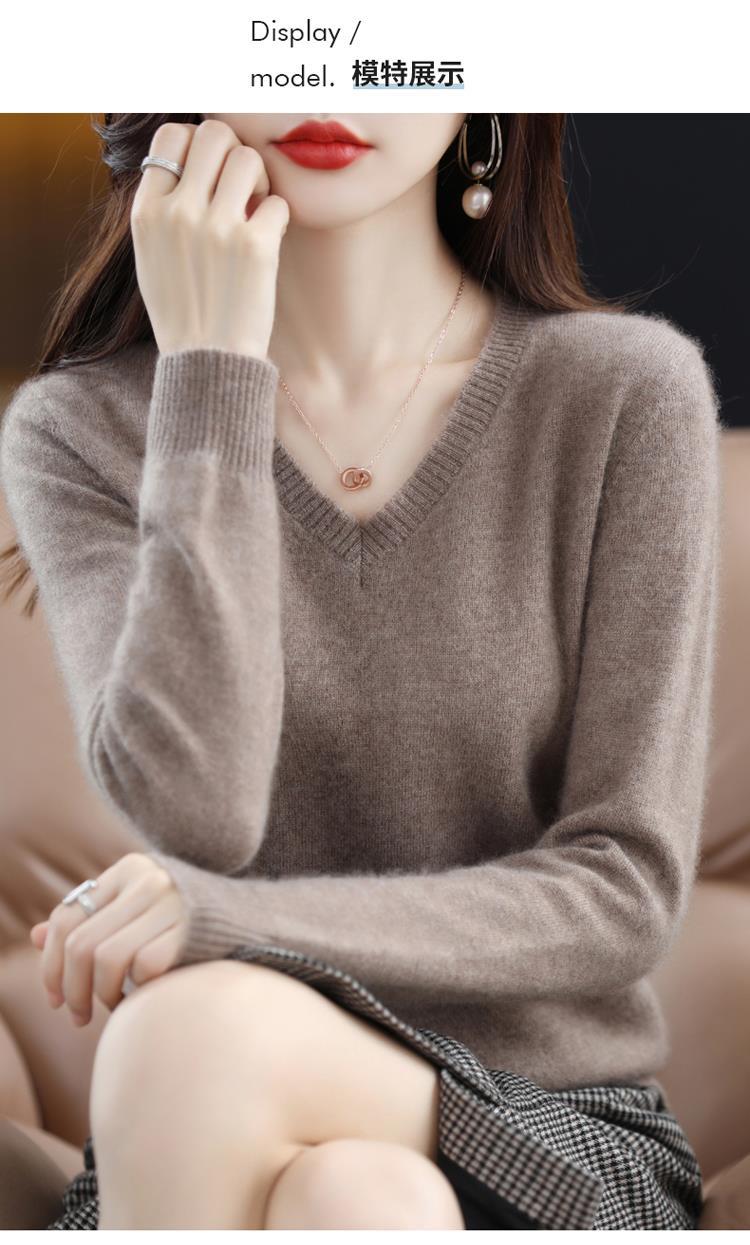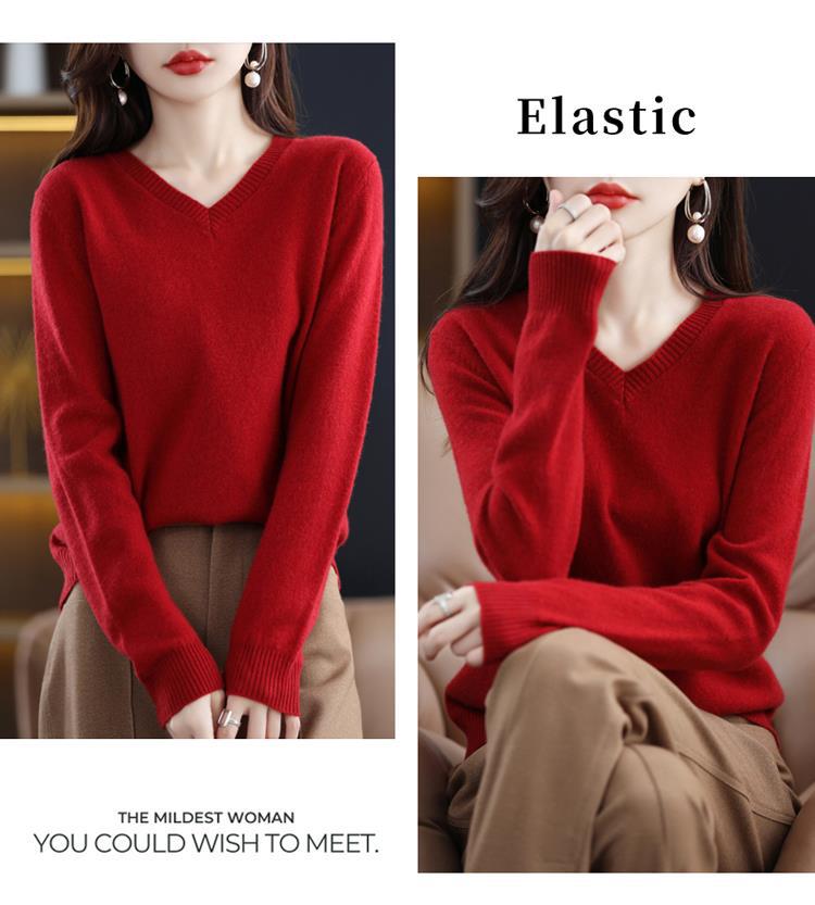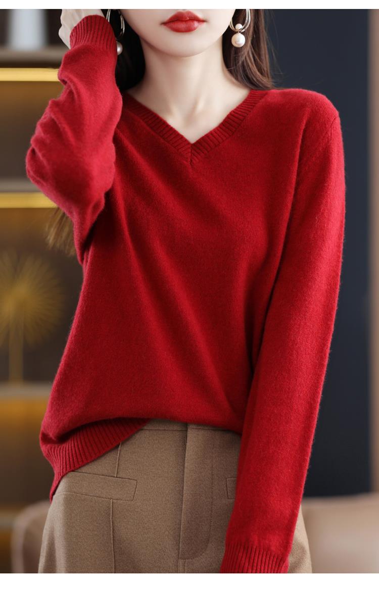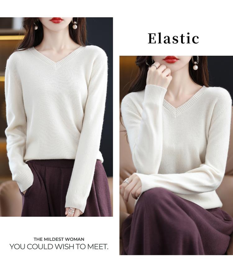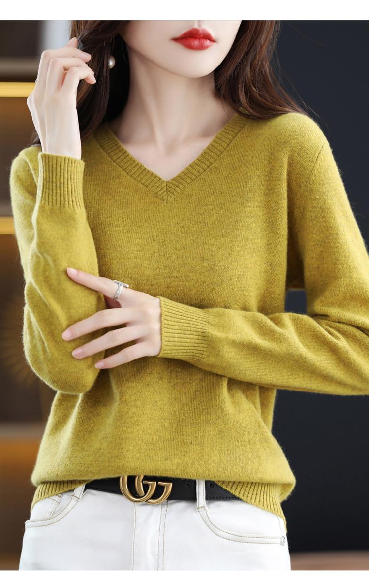 羊毛衫女2025秋季新款V领毛衣宽松显瘦套头长袖羊绒针织打底衫