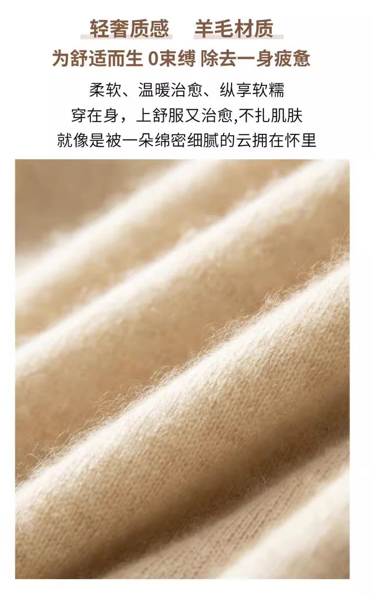 高级感羊毛衫女秋冬新款低圆领宽松毛衣套头纯色显瘦打底