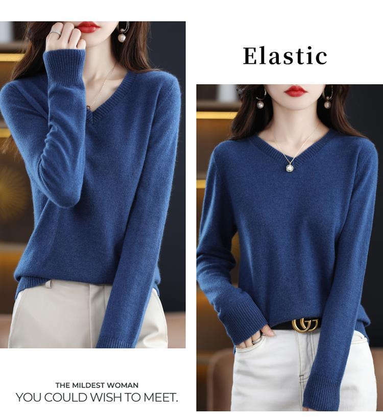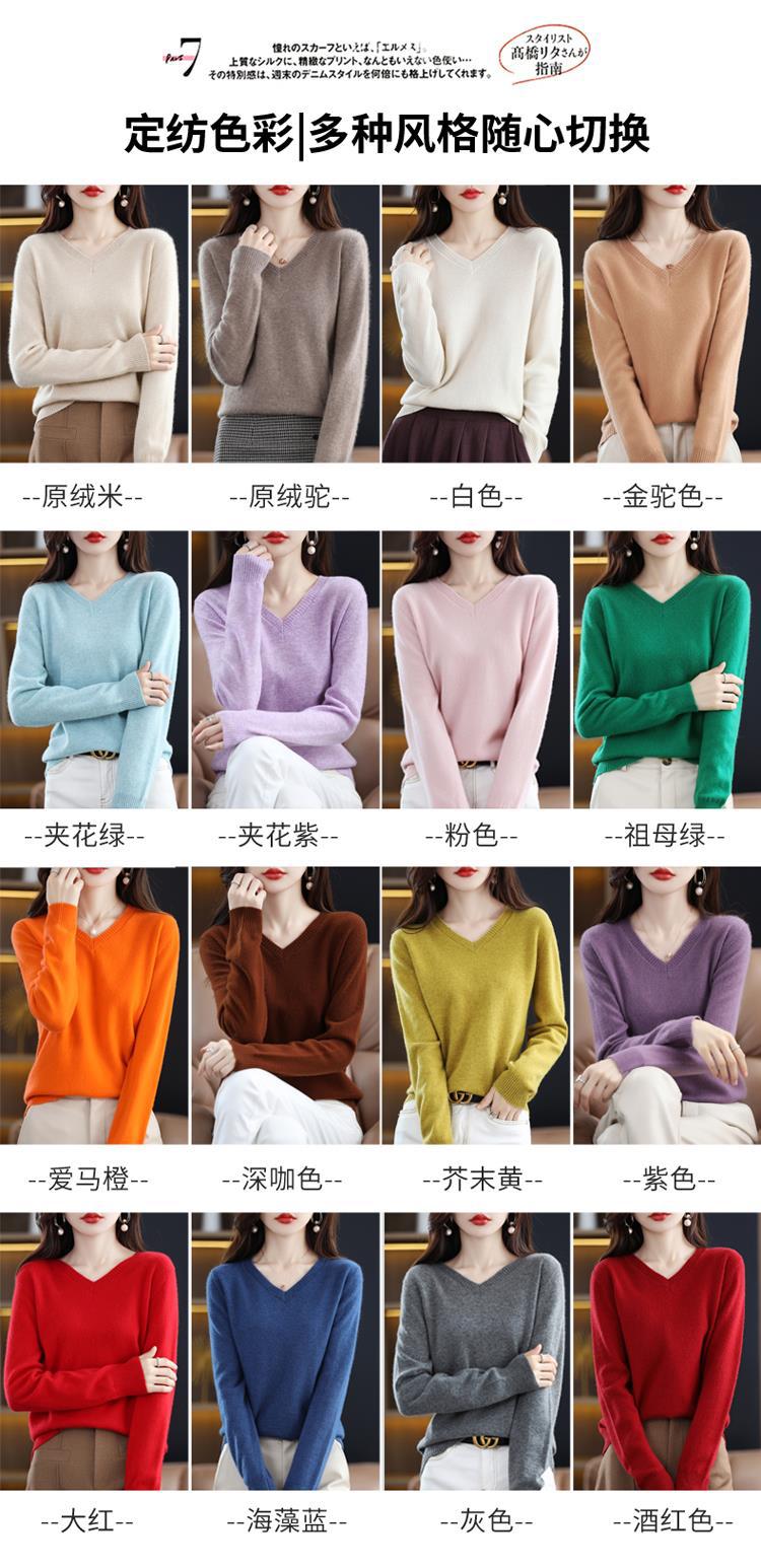 春秋新款羊毛衫女V领内搭大码毛衣修身羊绒衫薄款打底针织衫上衣
