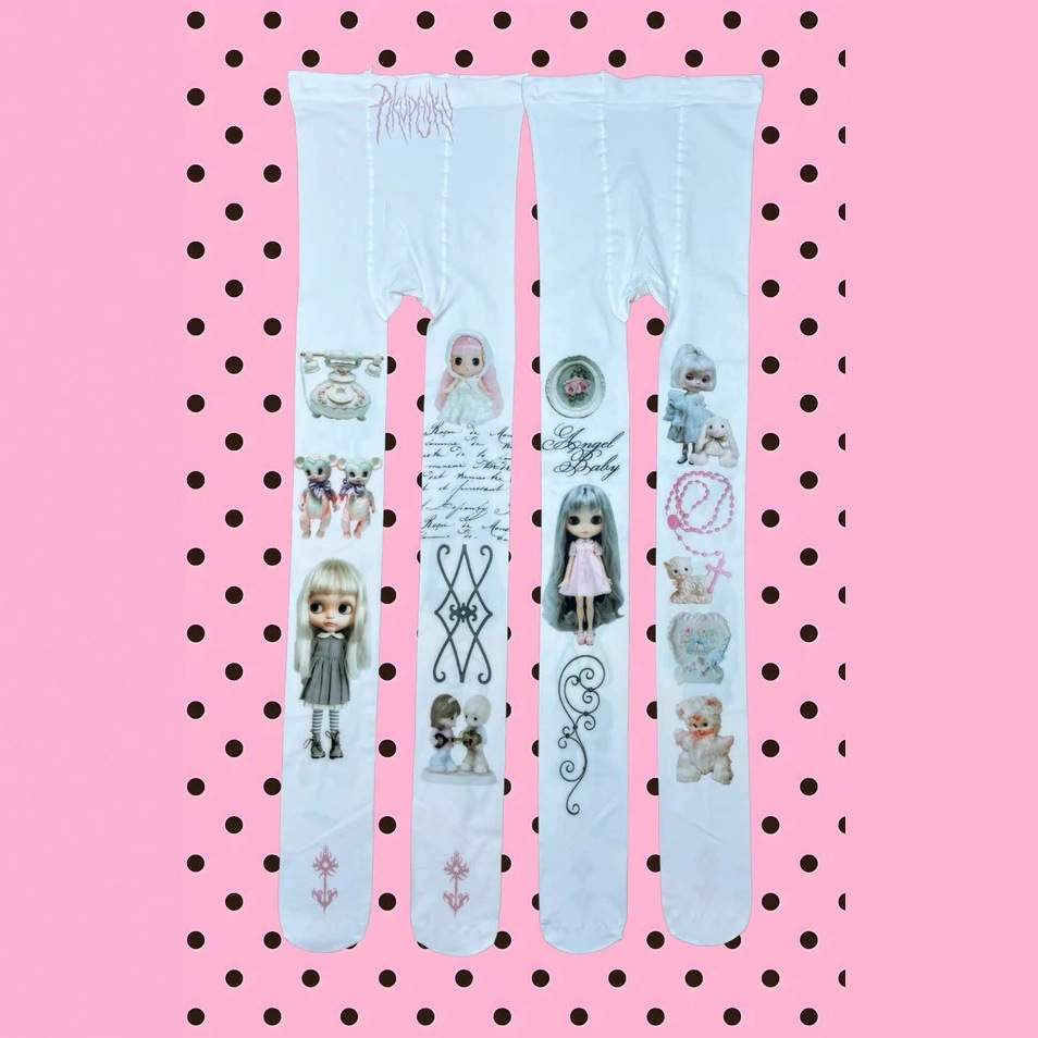 ロリータ柄ソックス 春夏 薄手 黒ストッキング サブカルチャー ニーハイソックス JK ロングソックス 白ストッキング キュート系 女の子風