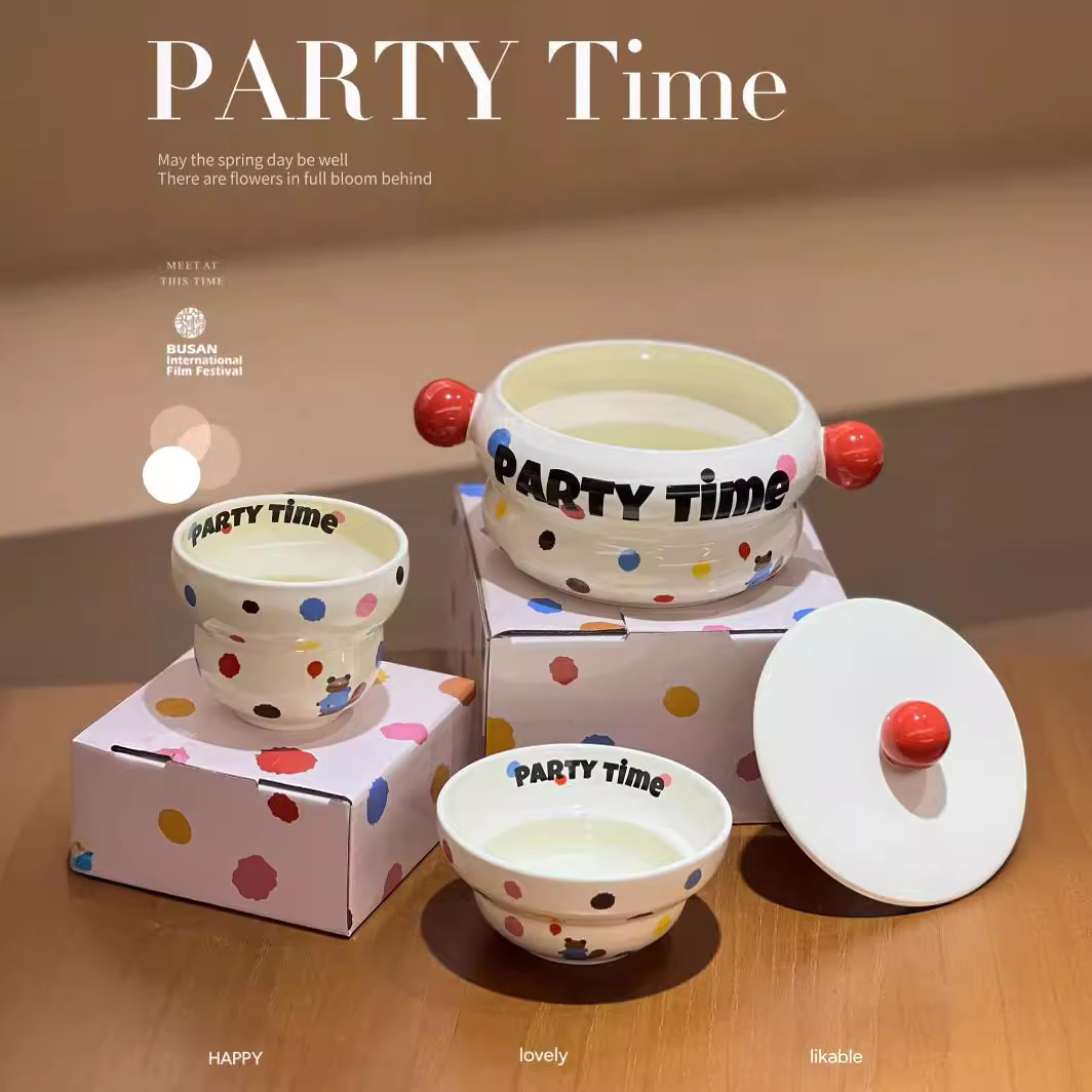 Ins陶磁パーティーtumiポイント熊波ポイントボウルカップヨーグルトボウルケーキボウル