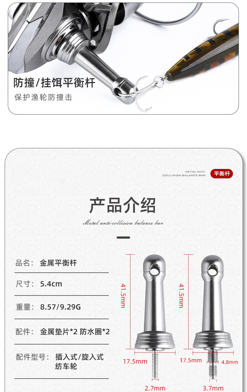 通用渔轮平衡杆纺车轮专用多款式旋入式路亚轮防撞金属平衡柱配件