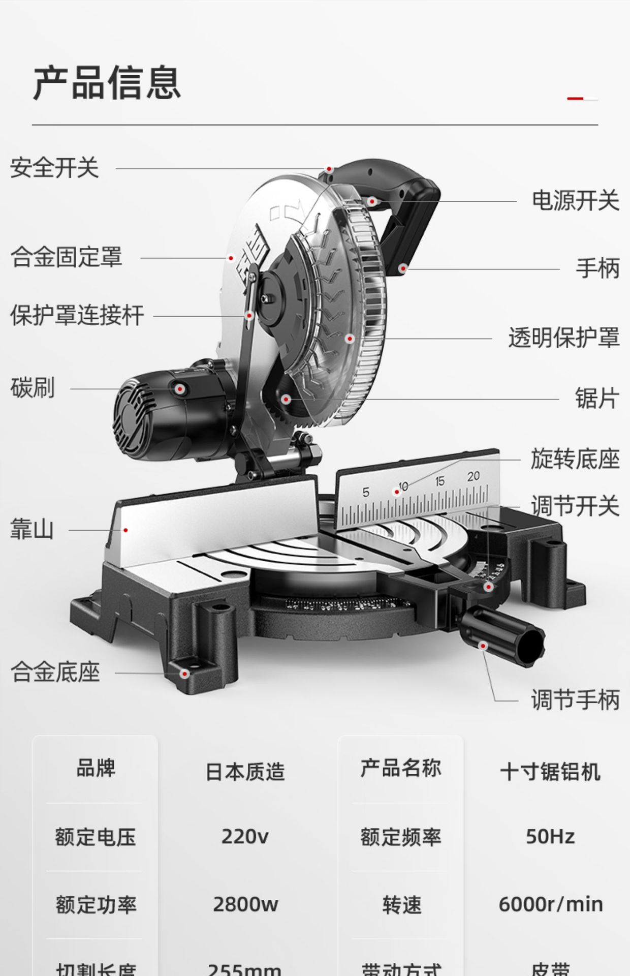 高精度アルミ鋸盤、アルミ合金切断機、アルミプロファイル多機能45度木工特殊斜め鋸盤、アングルソー