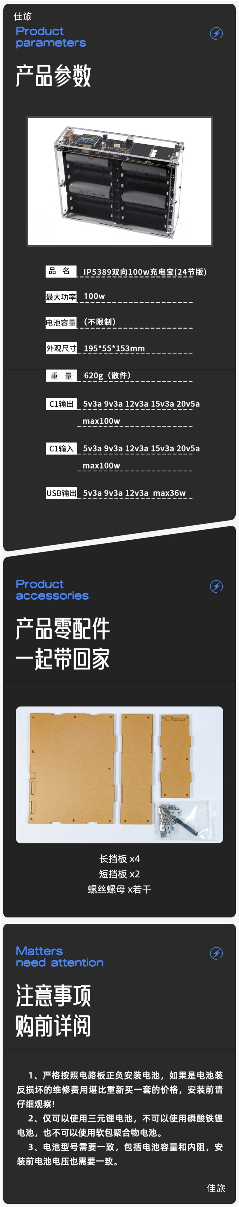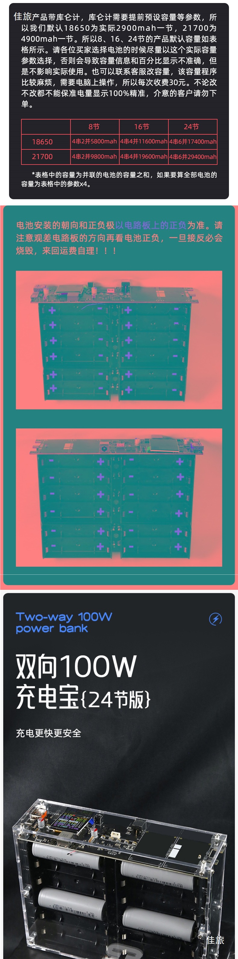 24 セクション モバイル電源セット キット IP5389 ハイパワー双方向急速充電 21700 パワーバンク部品
