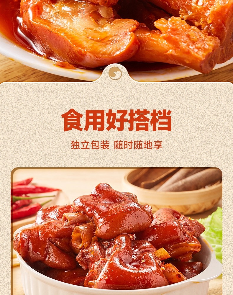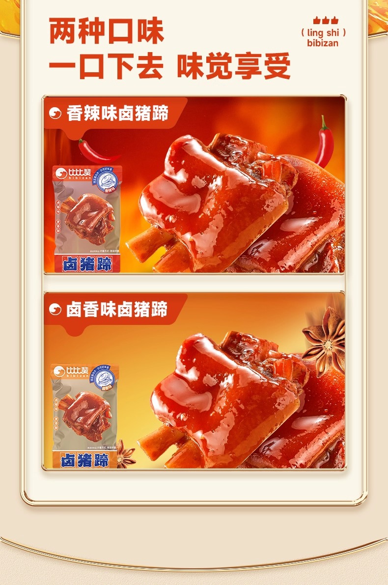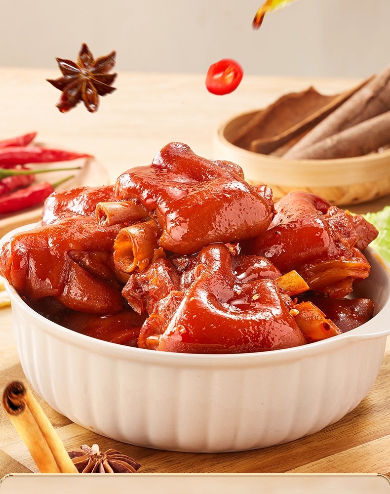ビビザンの豚足の煮込み、すぐに食べられる豚足、スパイシーな豚の肘の煮込み、食欲を満たすスナック、スナック食品