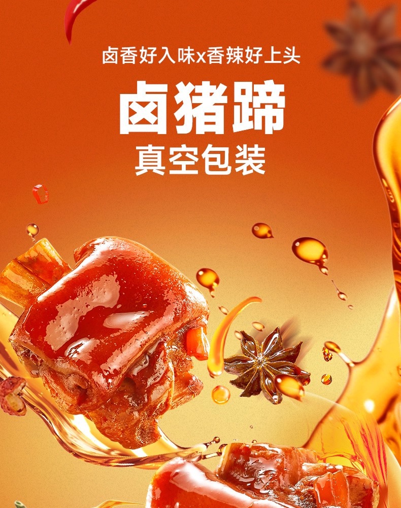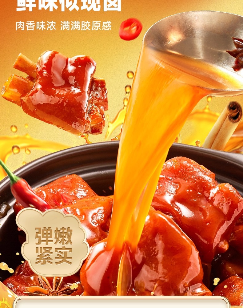醤油風味の豚足、袋を開けてすぐに食べられる豚肘、豚足、調理済み肉、おつまみ、スナック、カジュアルスナック、真空包装