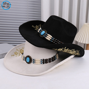 外国貿易の果洛チベット族のチベット式の帽子の西部のカウボーイの帽子の牛の頭はフェルトの帽子の民族の風の男女の帽子のh 27を飾ります。