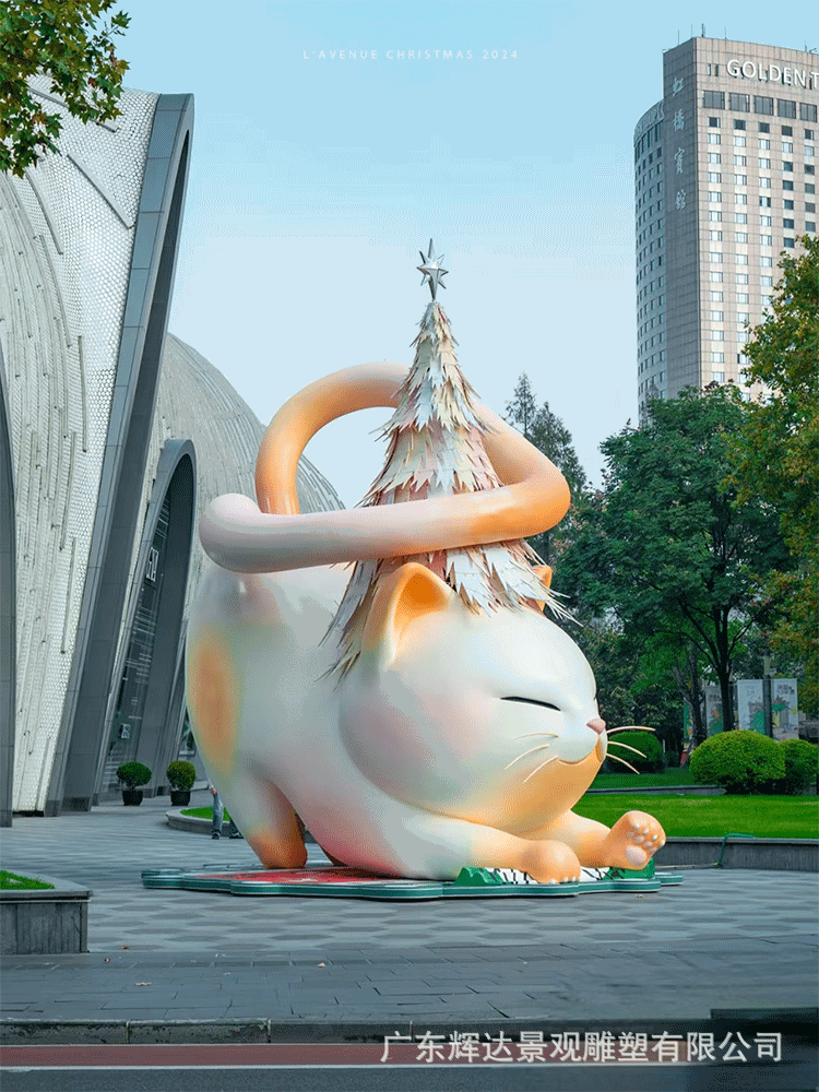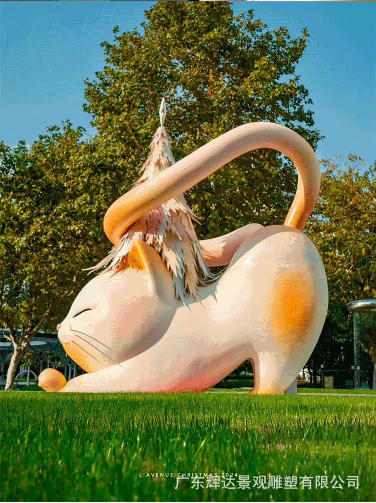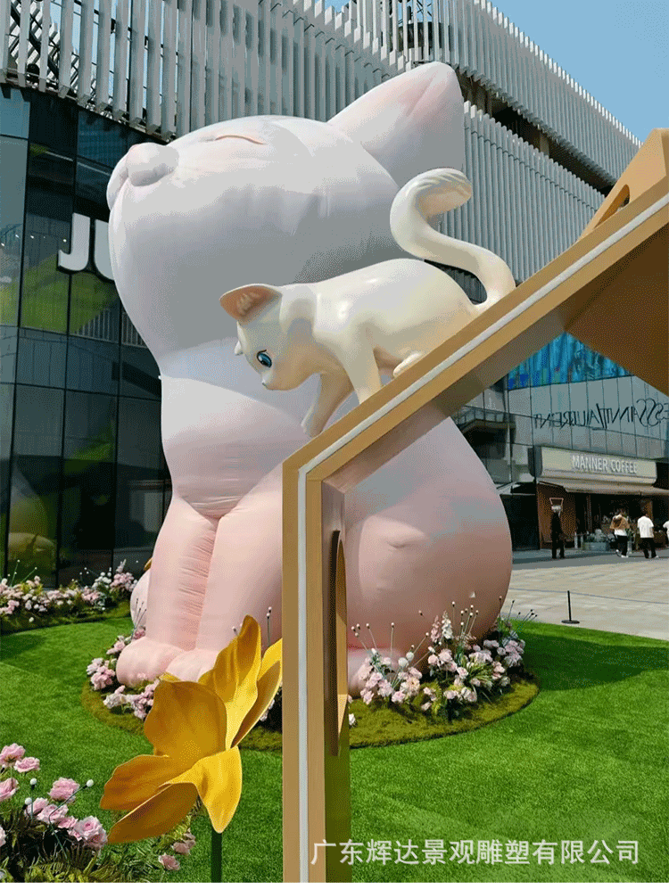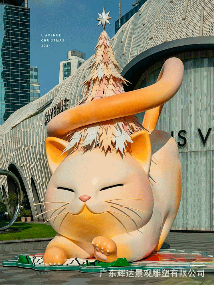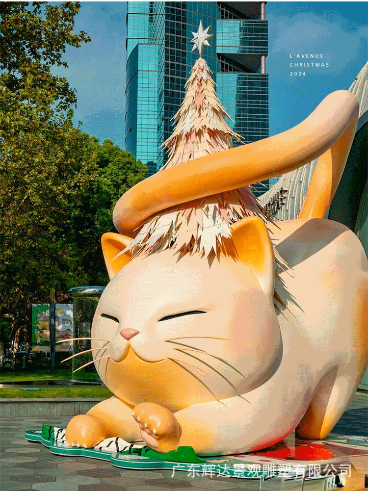 巨型玻璃钢雕塑动物摆件户外景观动物大型仿真猫咪商业街卡通美陈