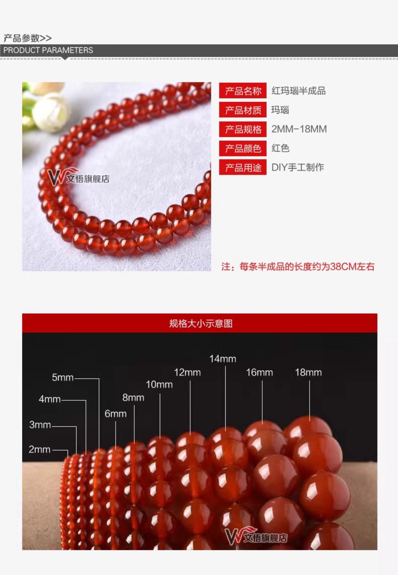 正品天然水晶 7A红玛瑙散珠半成品DIY饰品配珠手串珠子红玛瑙圆珠
