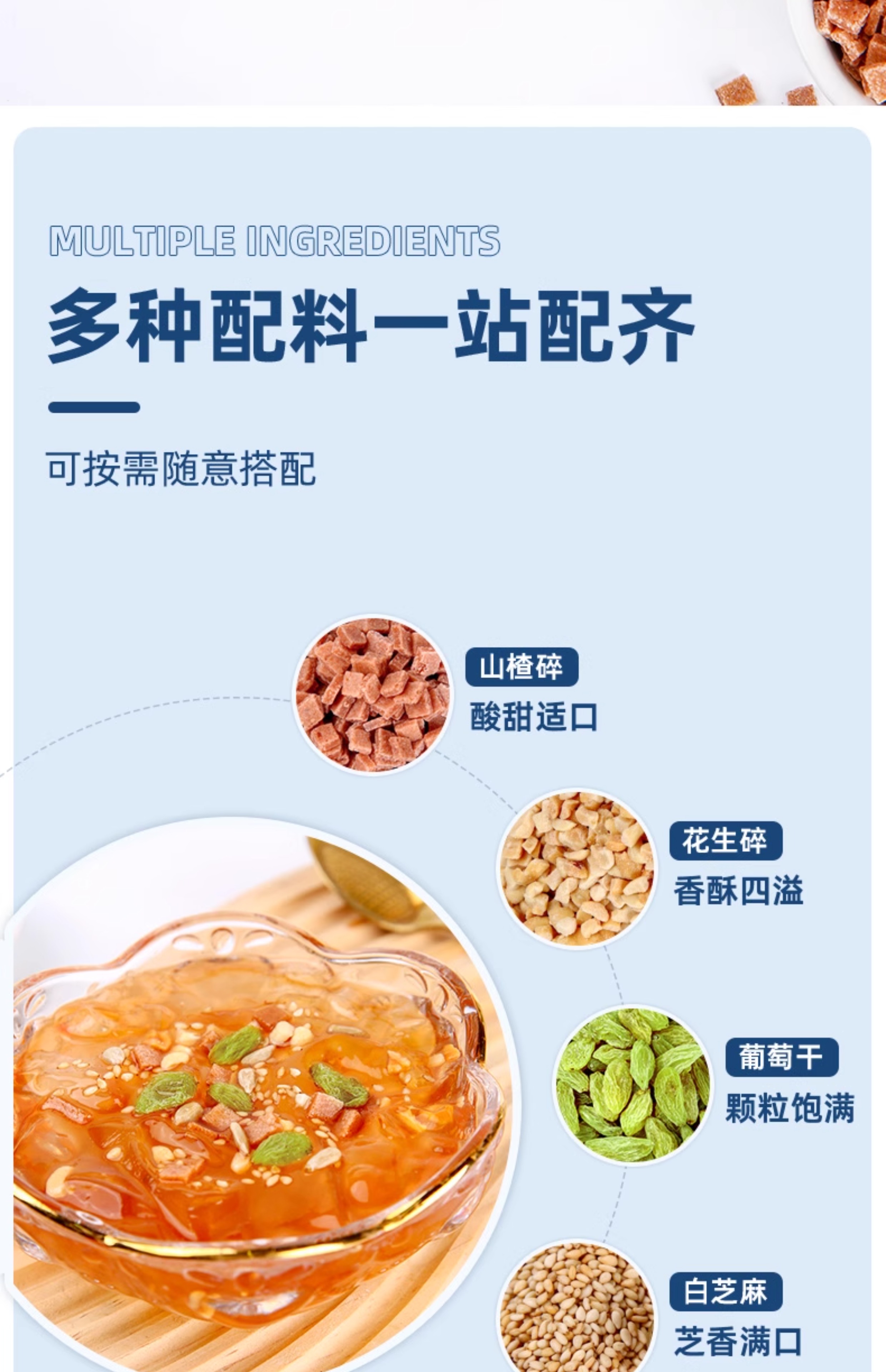 梱包仕様 【5缶】刻みサンザシ 500g + 刻みピーナッツ 500g + レーズン 500g + 白ごま 500g + 熟したメロンの種 500g,【4缶】刻みサンザシ 500g + 刻みピーナッツ 500g + レーズン 500g + 白ごま 500g,【4缶】刻んだサンザシ 500g + 刻んだピーナッツ 500g + レーズン 500g + メロンの種 500g,【3缶】刻みサンザシ 500g + 刻みピーナッツ 500g + レーズン 500g,【2缶】ホーソンクラッシュ 500g + 白ごま 500g,【2缶】ホーソンクラッシュ500g+レーズン500g,【2缶】刻みサンザシ 500g + 刻みピーナッツ 500g,【1缶】ホーソーンクラッシュ 500g,アイスパウダー 40g×3袋,常温タロイモボール 500g,はちみつ豆 500g,ココナッツ 500g,液黒糖 250g