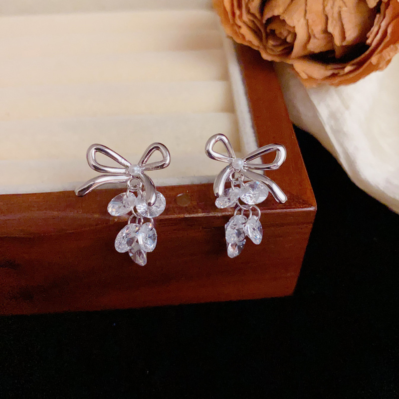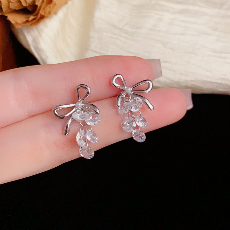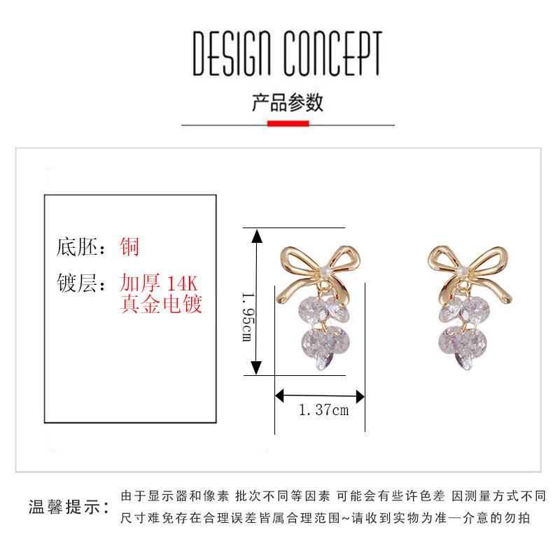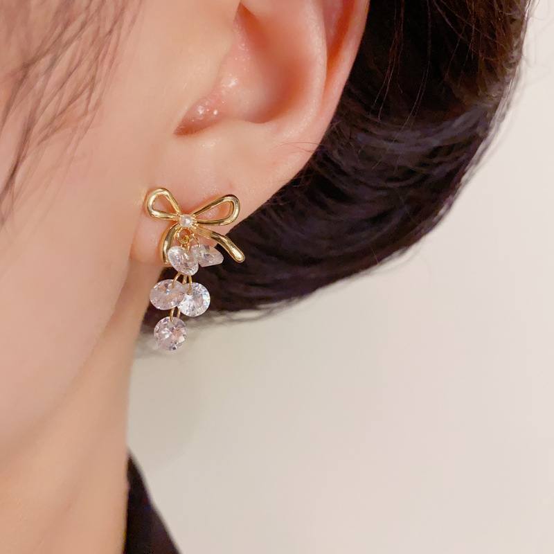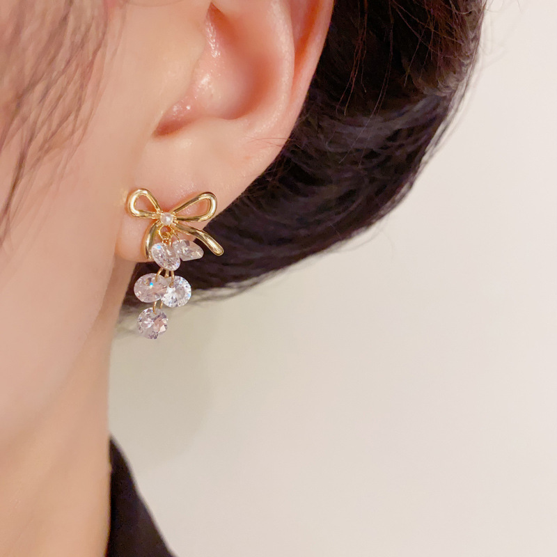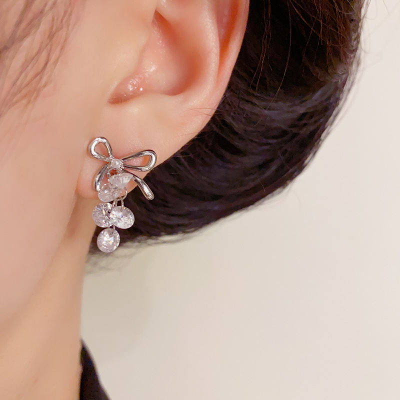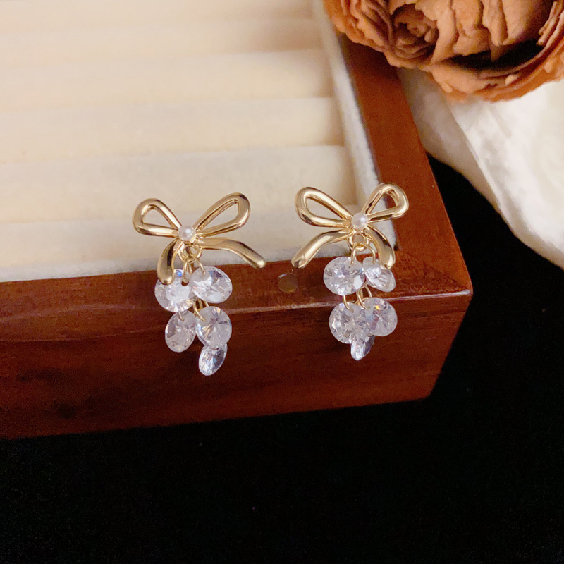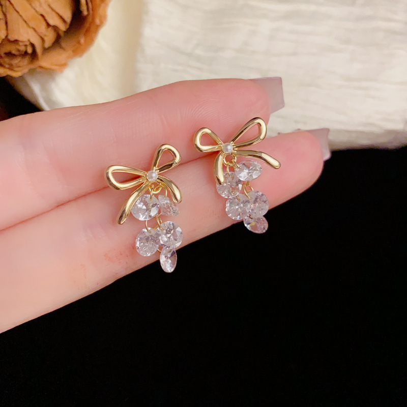 ニッチなライトラグジュアリーファッションハイエンドメタルリボンクリスタルグレープイヤリング、甘くて多用途な超光沢のあるイヤリング