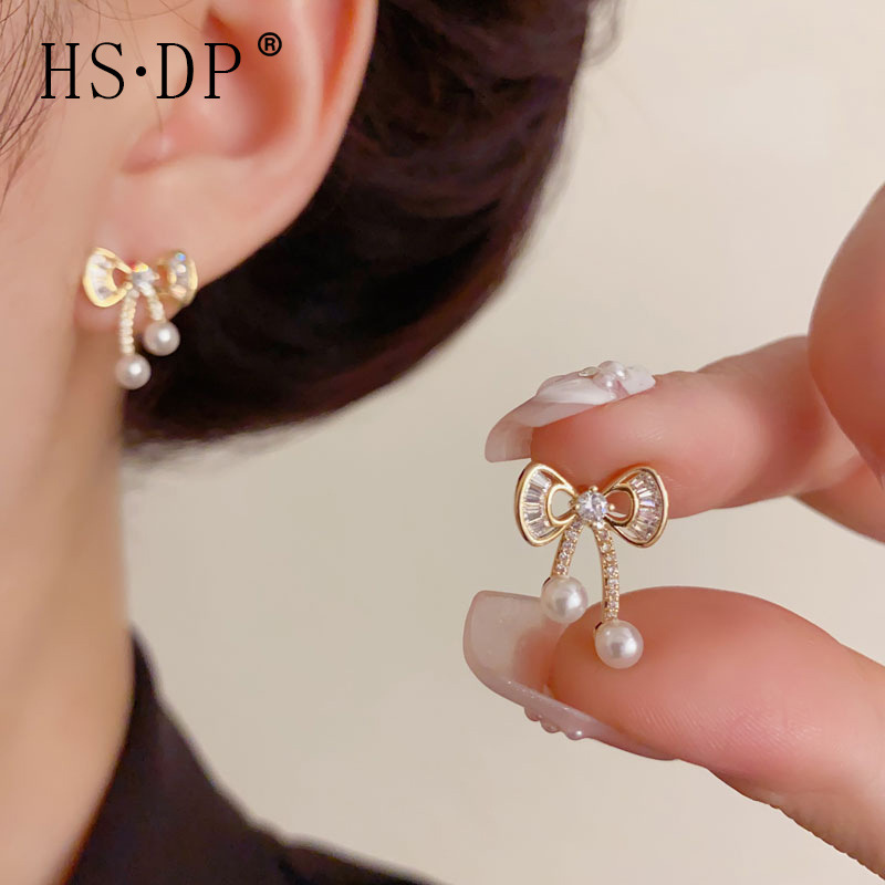 小众气质时尚简约镶钻蝴蝶结珍珠耳钉精致温柔百搭设计感耳环批发
