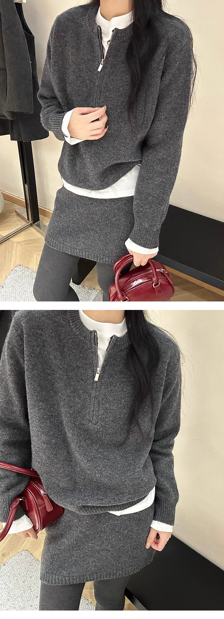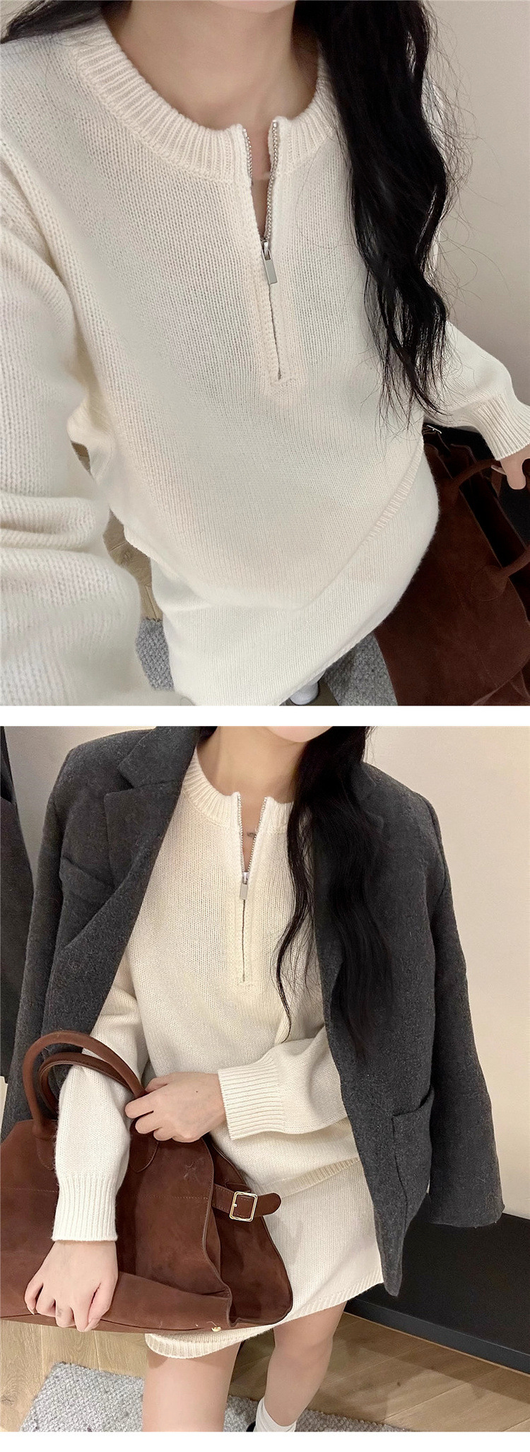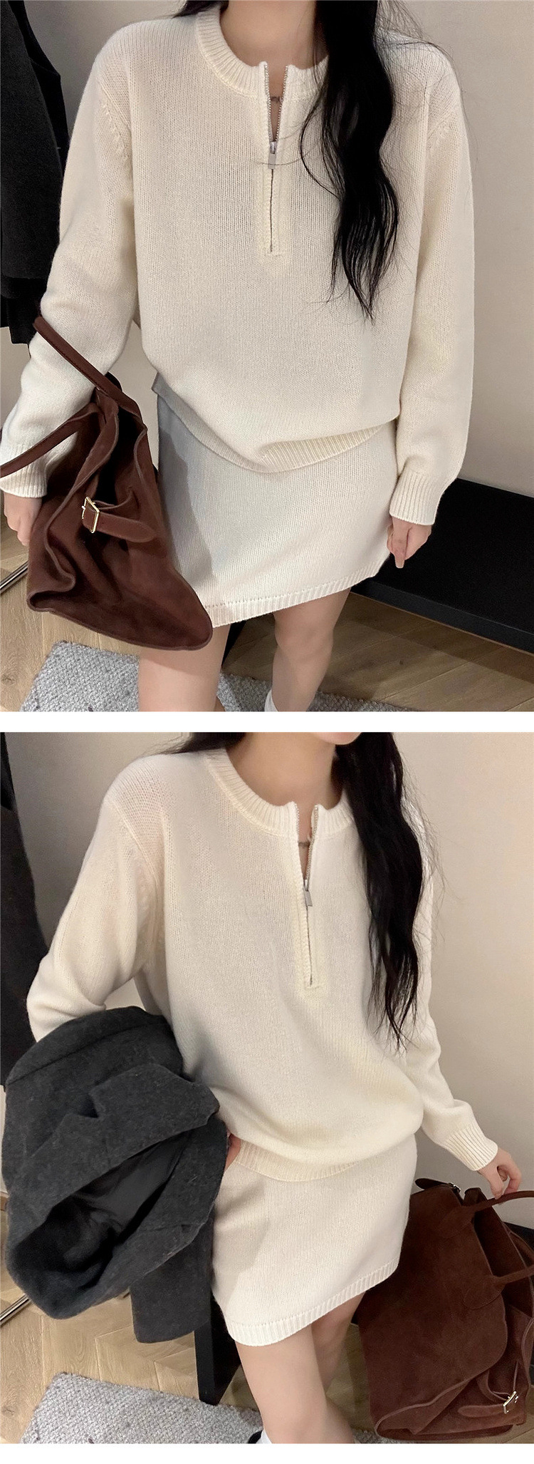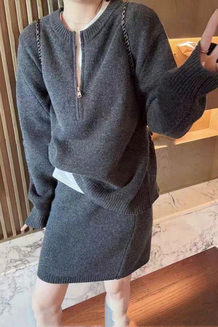 2025秋冬新款针织套装减龄洋气拉链韩系针织半身裙优质毛衣套装女