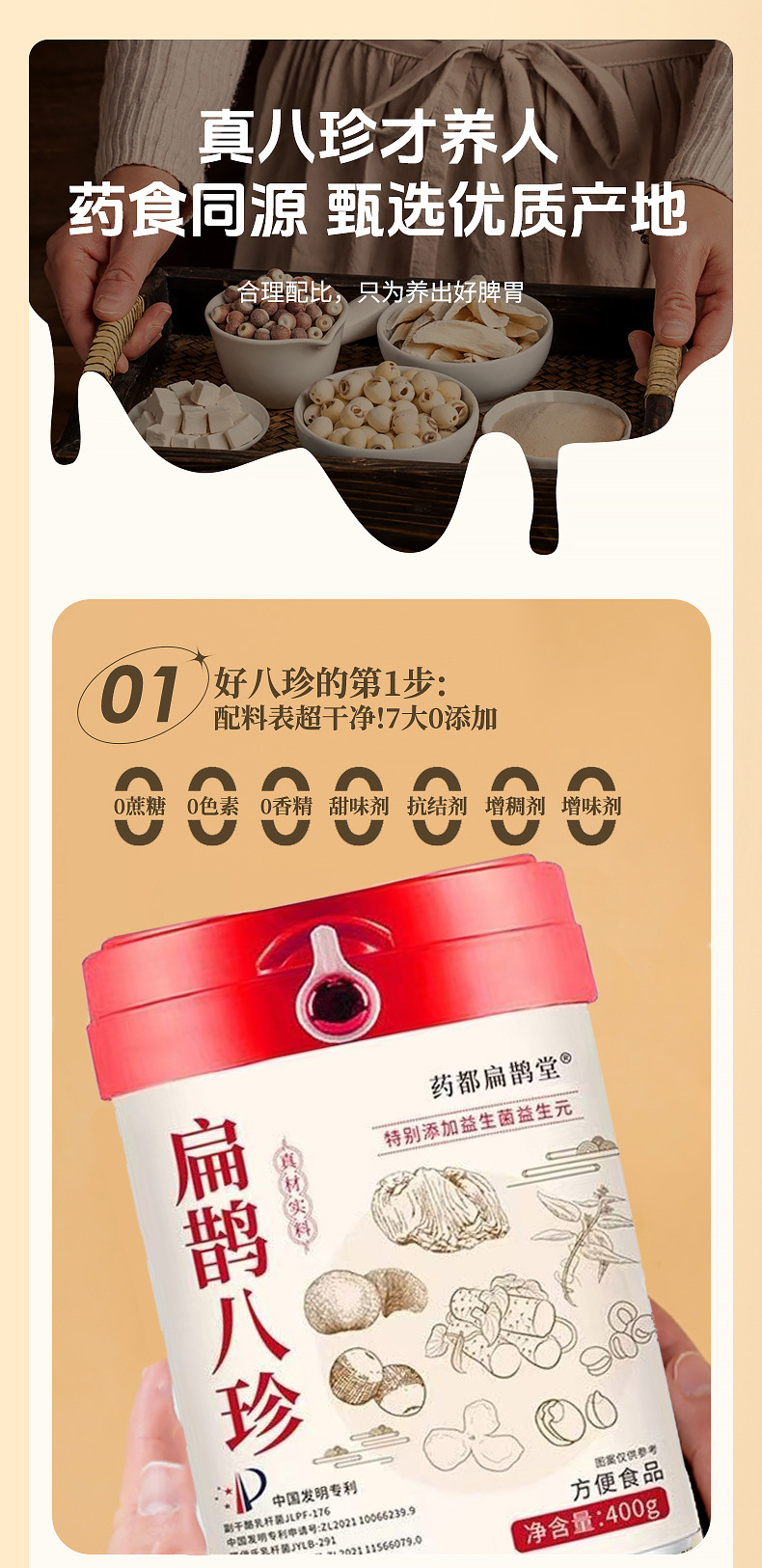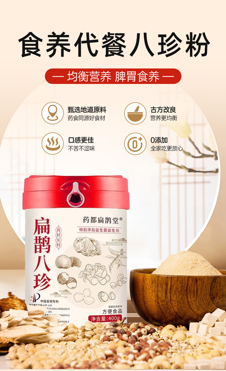 扁鹊八珍粉罐装400g山药茯苓薏仁莲子营养即食八珍粉现货批发元气