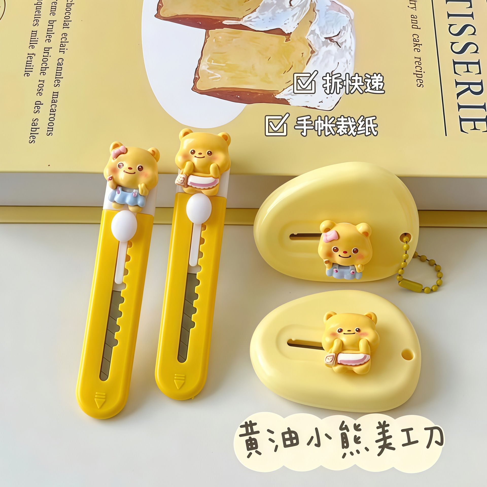 可爱黄油小熊美工刀锋利小号迷你便携式快递开箱裁纸刀拆包裹神器