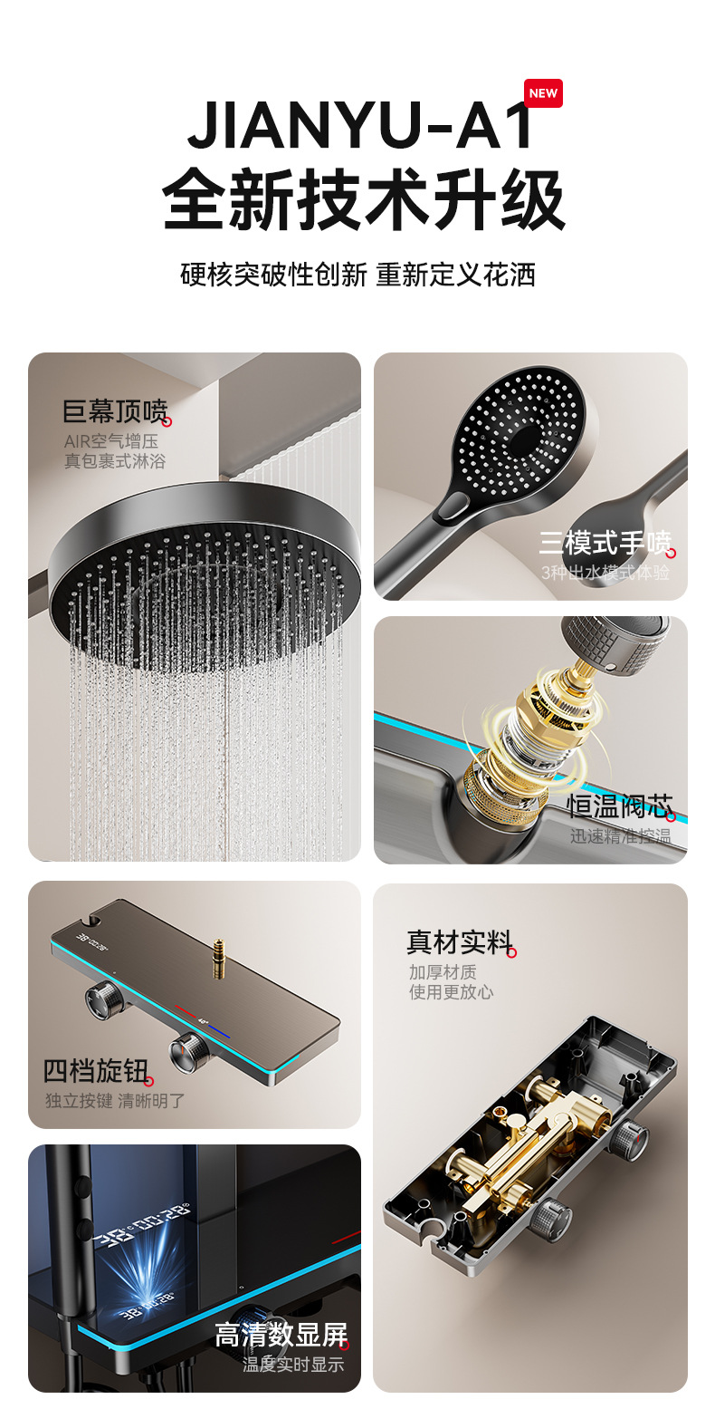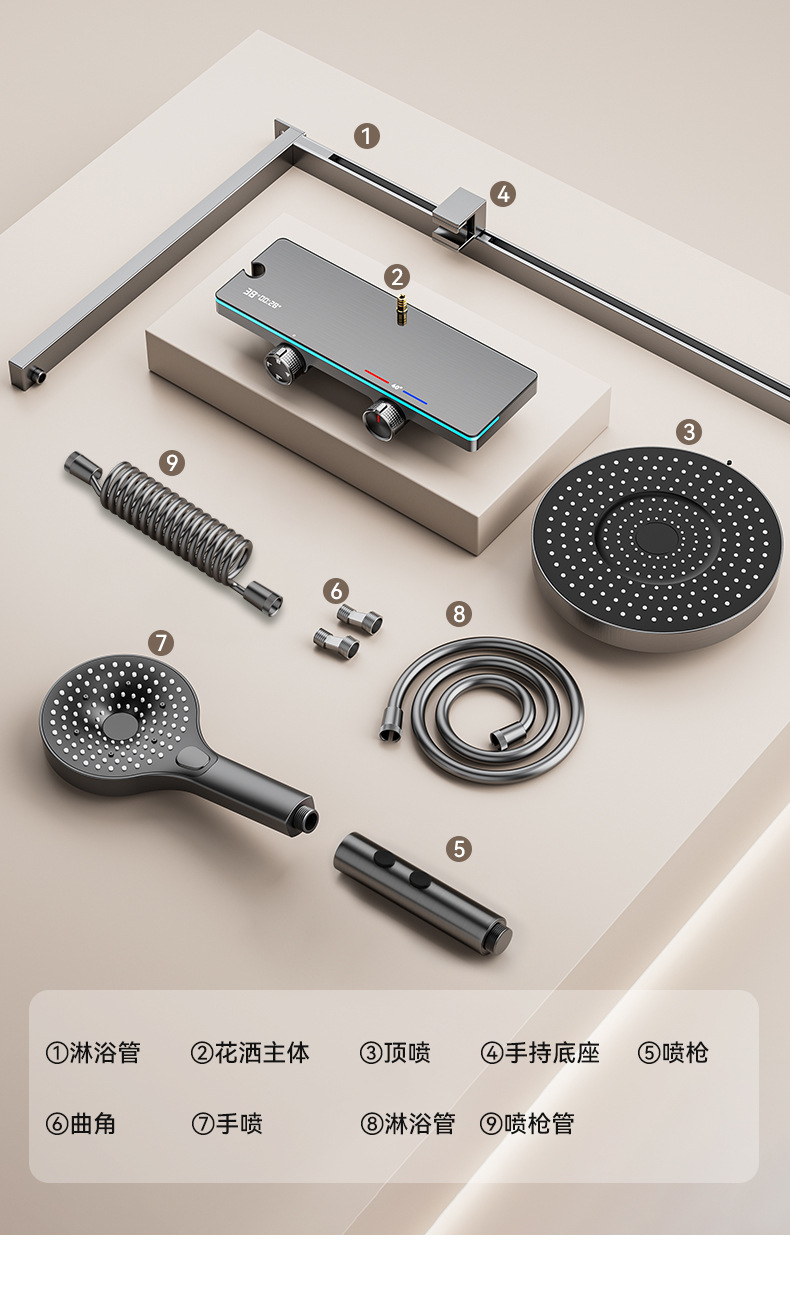 厂家批发淋浴花洒套装大置物家用智能数显卫生间增压淋雨器卫浴器