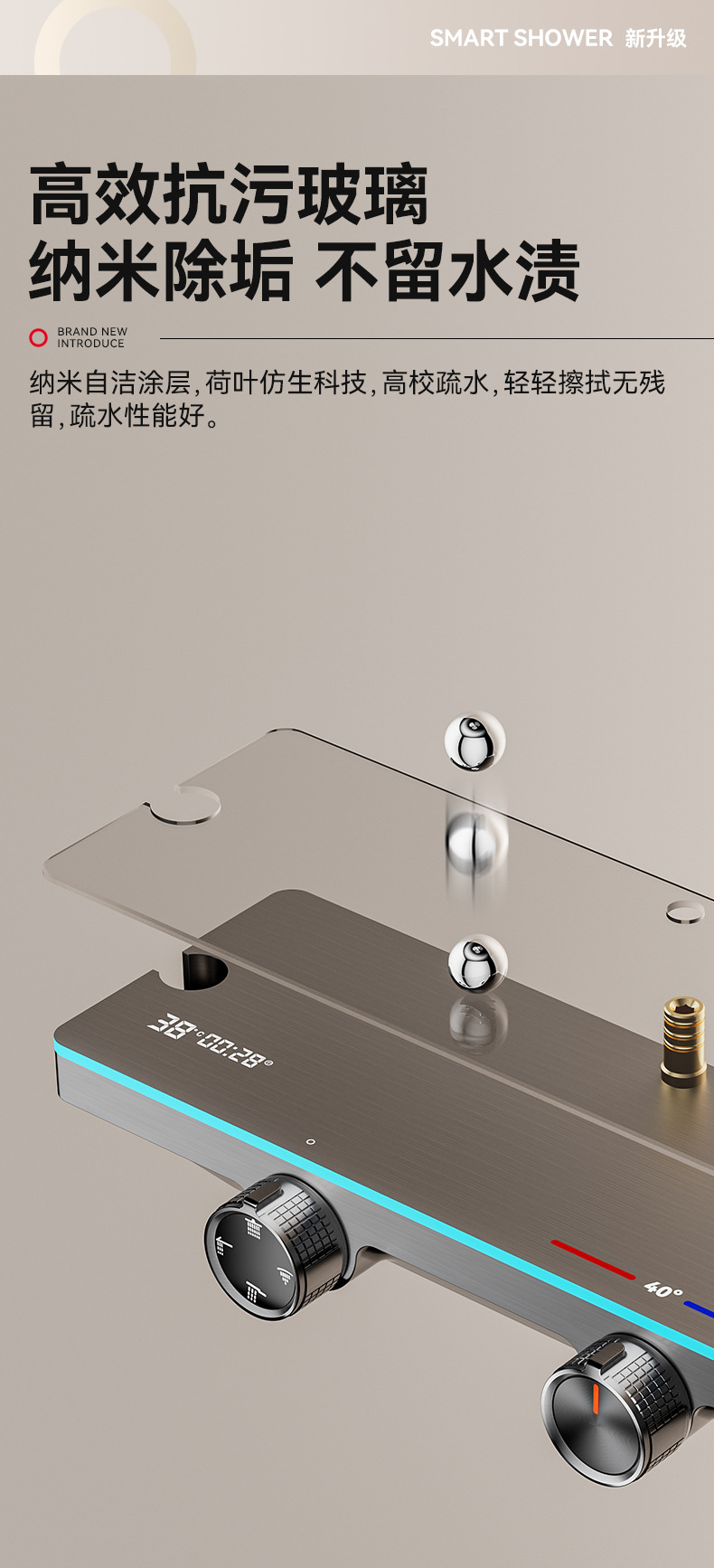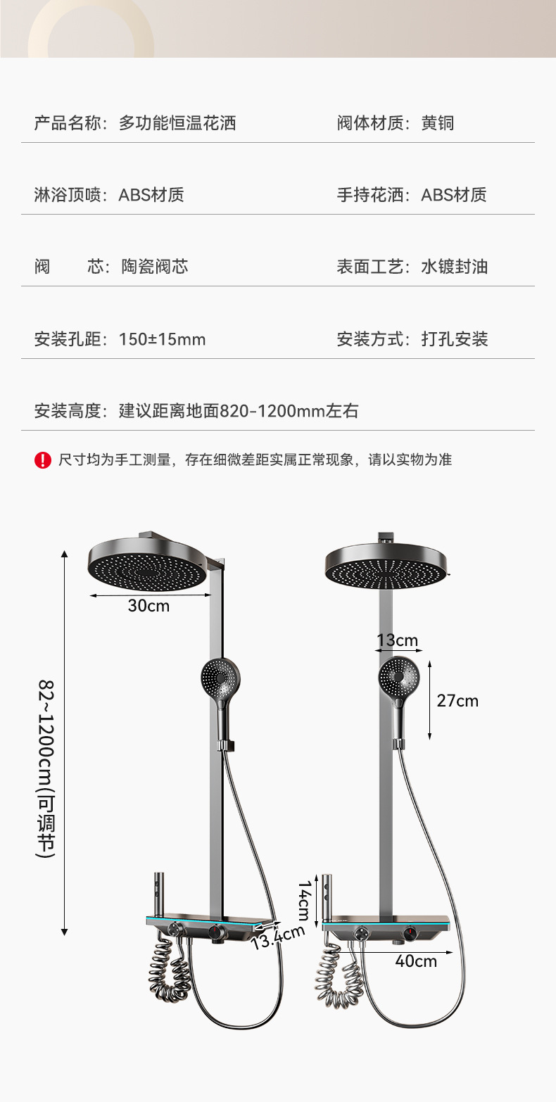 功能 喷雾,数字显示,恒温,雨淋