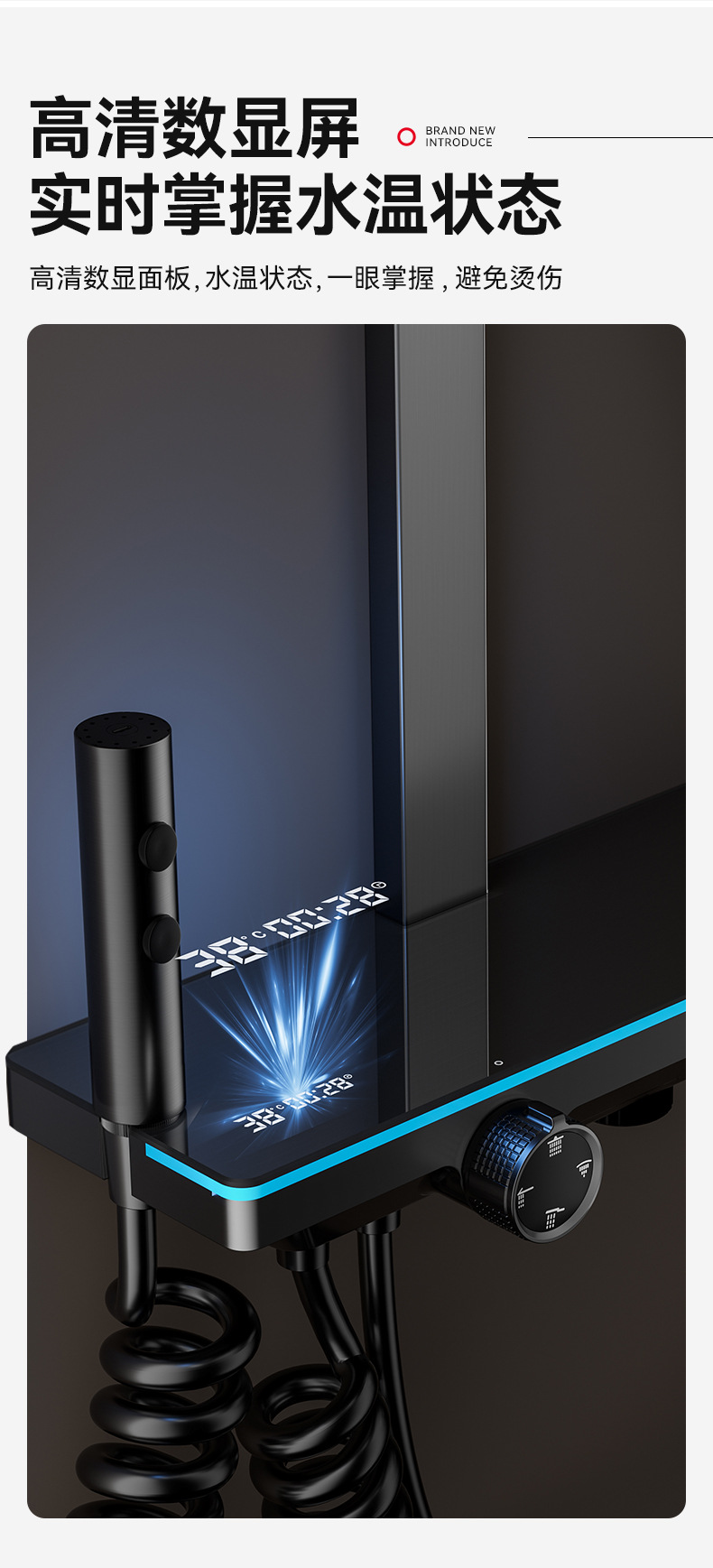 数显氛围灯钢琴键淋浴套装家用花洒加软管增压强力花洒套装一整套