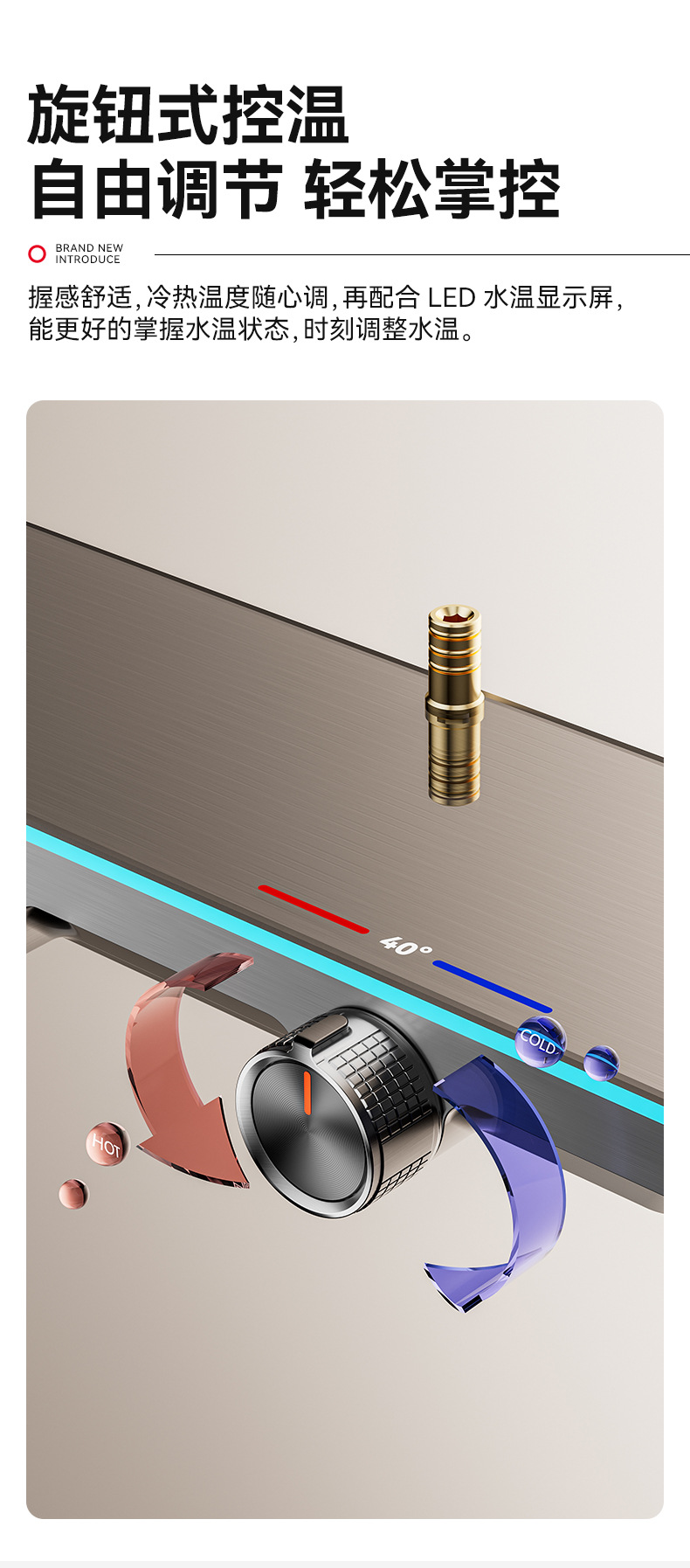 跨境全铜淋浴器花洒套装恒温家用智能数显淋浴琴键花洒全套一整套