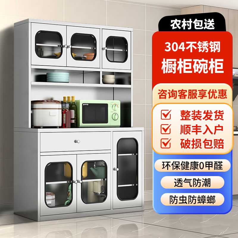 304不锈钢家用厨房碗柜餐边柜收纳柜置物柜橱柜多功能专用储物柜
