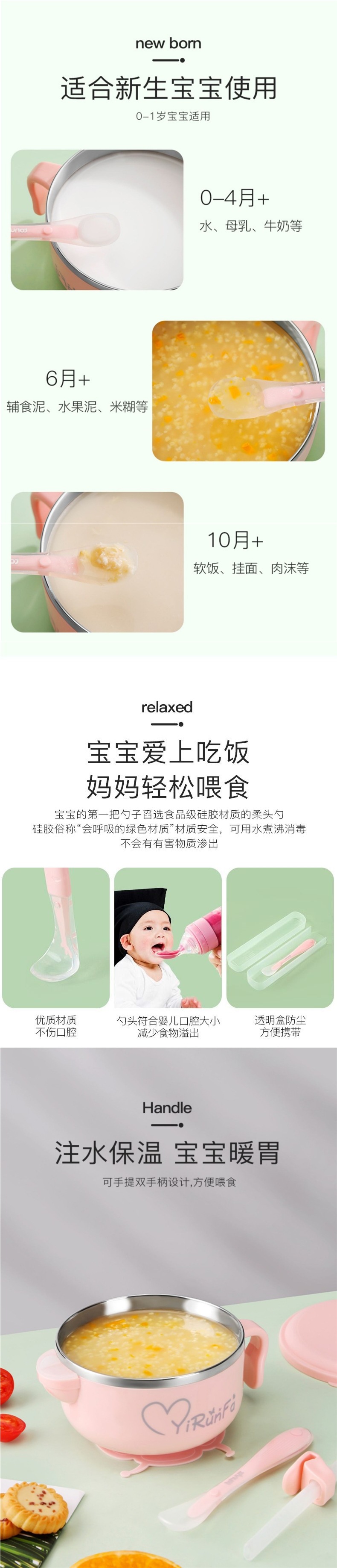 水入り保温離乳食ボウル、乳児専用セット、生後6ヶ月の幼児用ライスシリアルボウルとスプーン