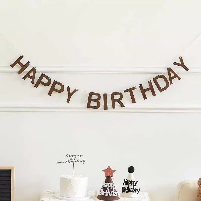 Ins森林系不織布誕生日アレンジパーティーフラッグ引き花柄シーン雰囲気フェルトお誕生日おめでとう