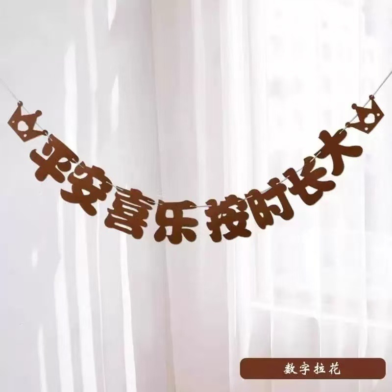 Ins韩风フェルト诞生日フラッグ毛玉串フェルト数字诞生日百日満月饰りフラッグ花引き