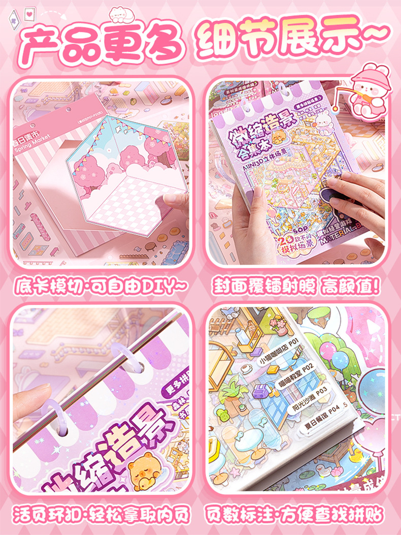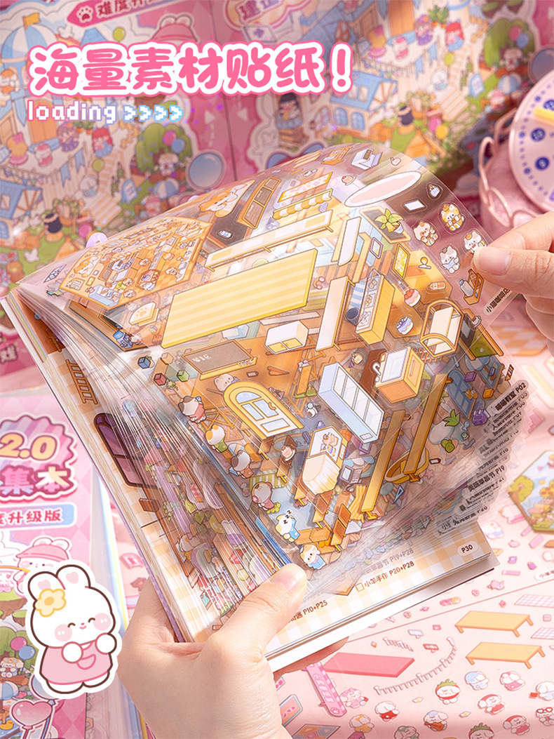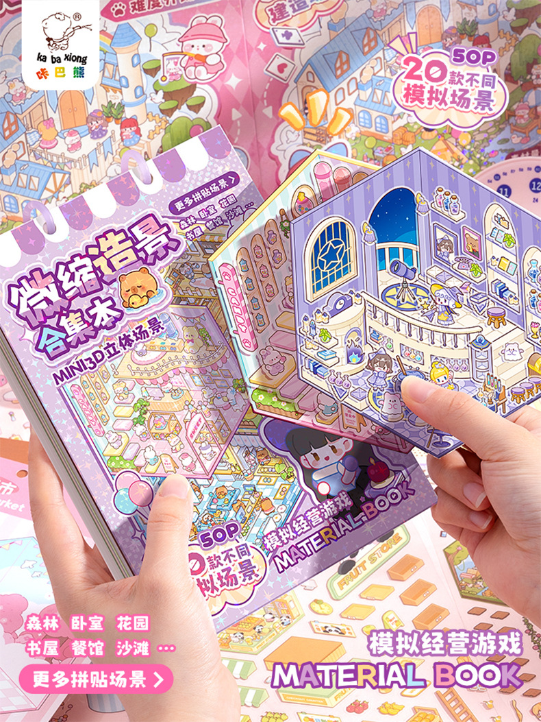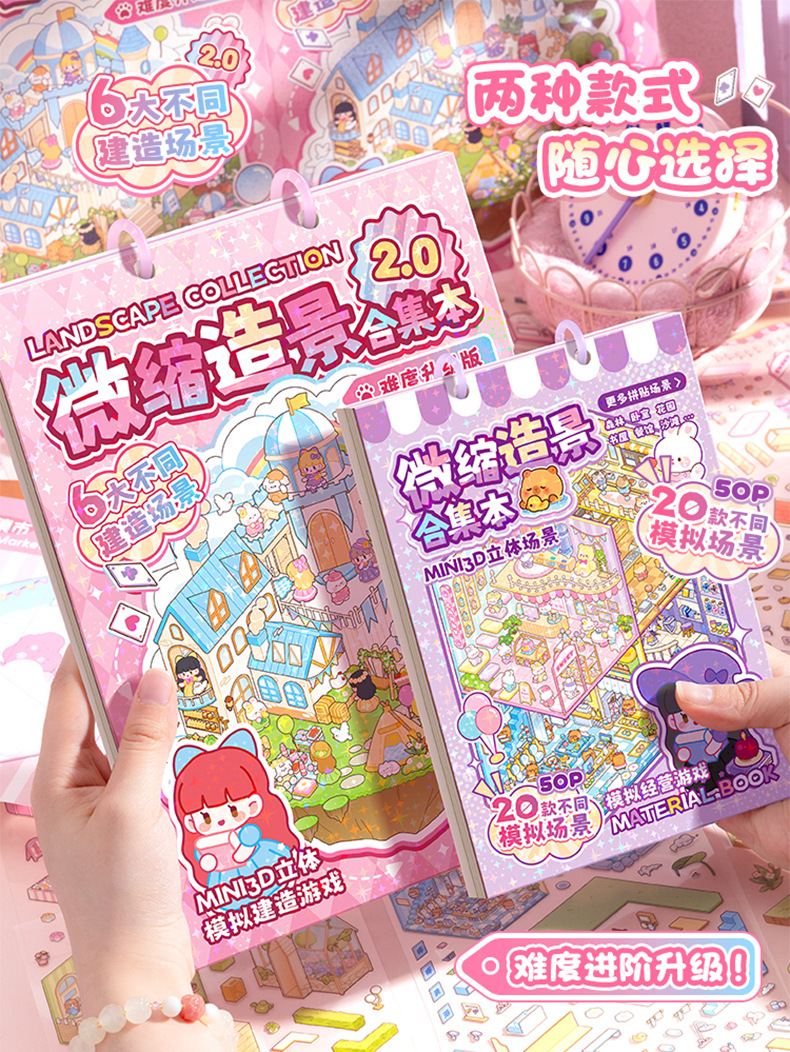 ミニチュアシーンステッカー集本3d立体小屋造景ステッカー本創意子供DIY手作りタイル本